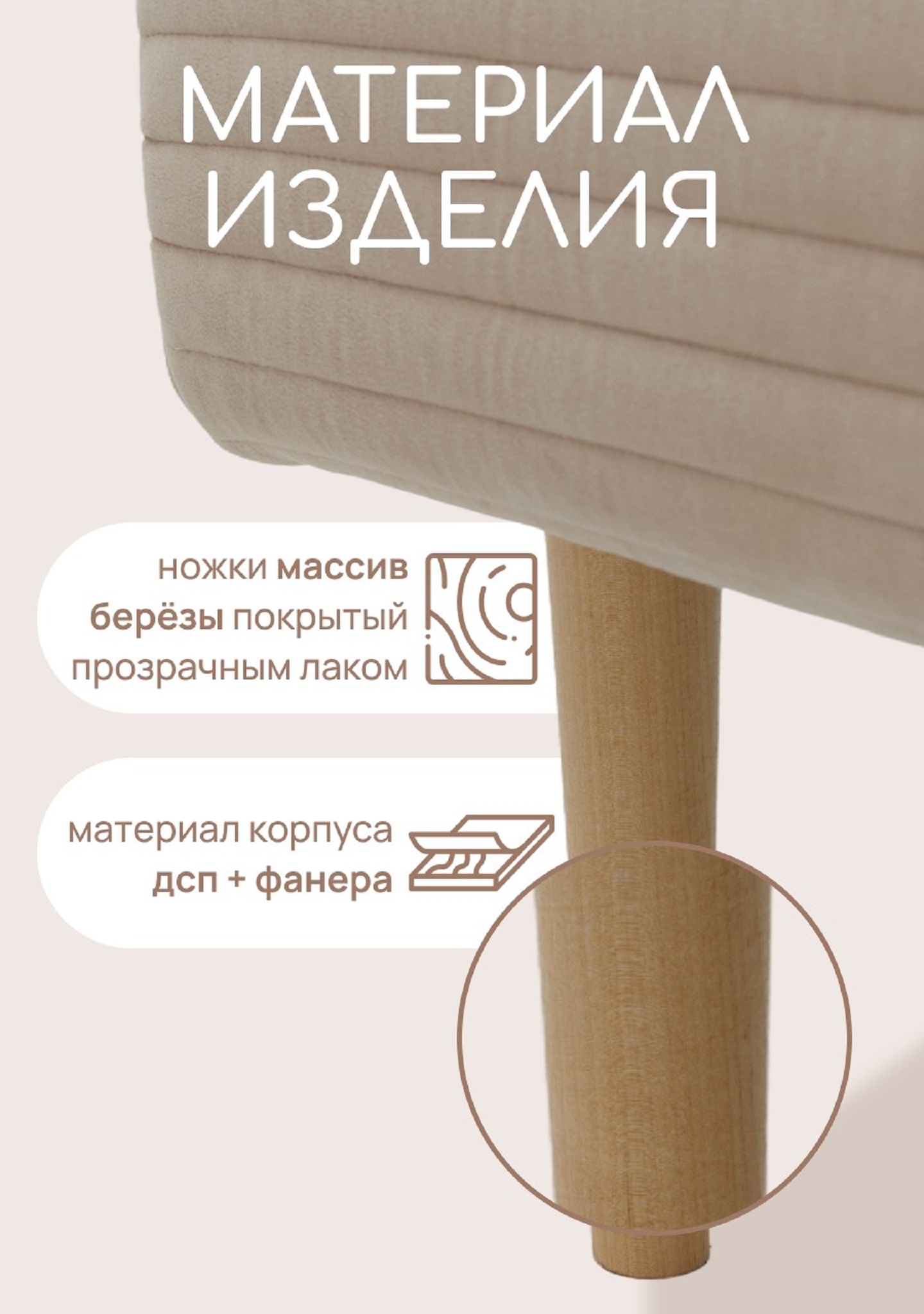 Ножки - массив березы, покрытые прозрачным лаком.