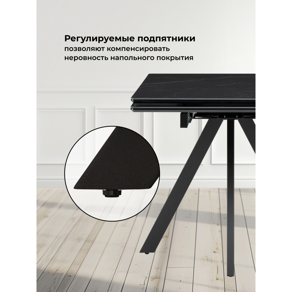 Керамическая поверхность устойчива к повреждениям, легко очищается и не боится высоких температур, что делает стол практичным в использовании.