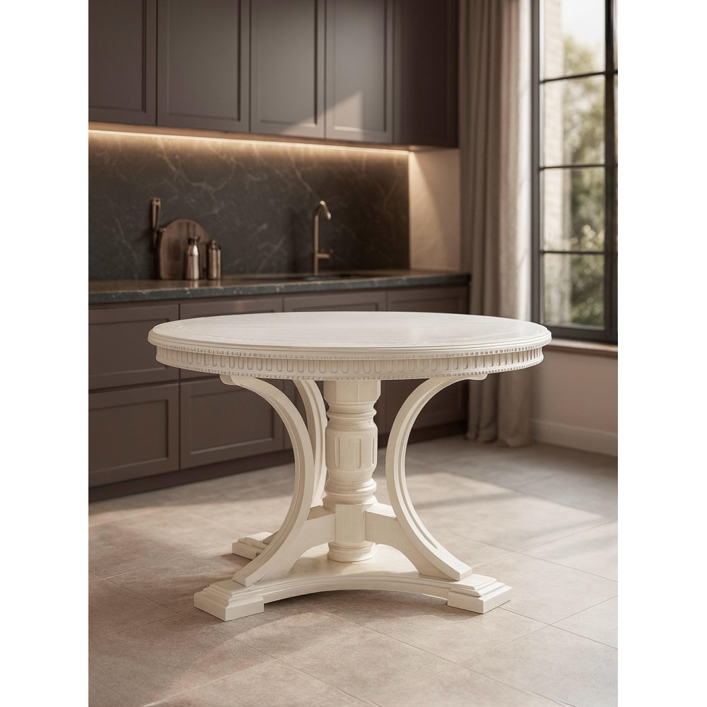 Форма столешницы: овальная — такая форма способствует более комфортному общению и создает ощущение простора.