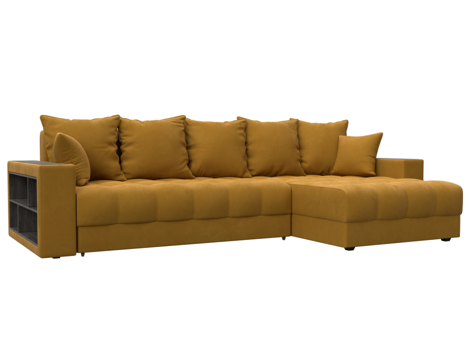 Отзывы о Столплит Диван угловой с декором и полкой Лига-050 НПБ, велюр BRUT Желтый