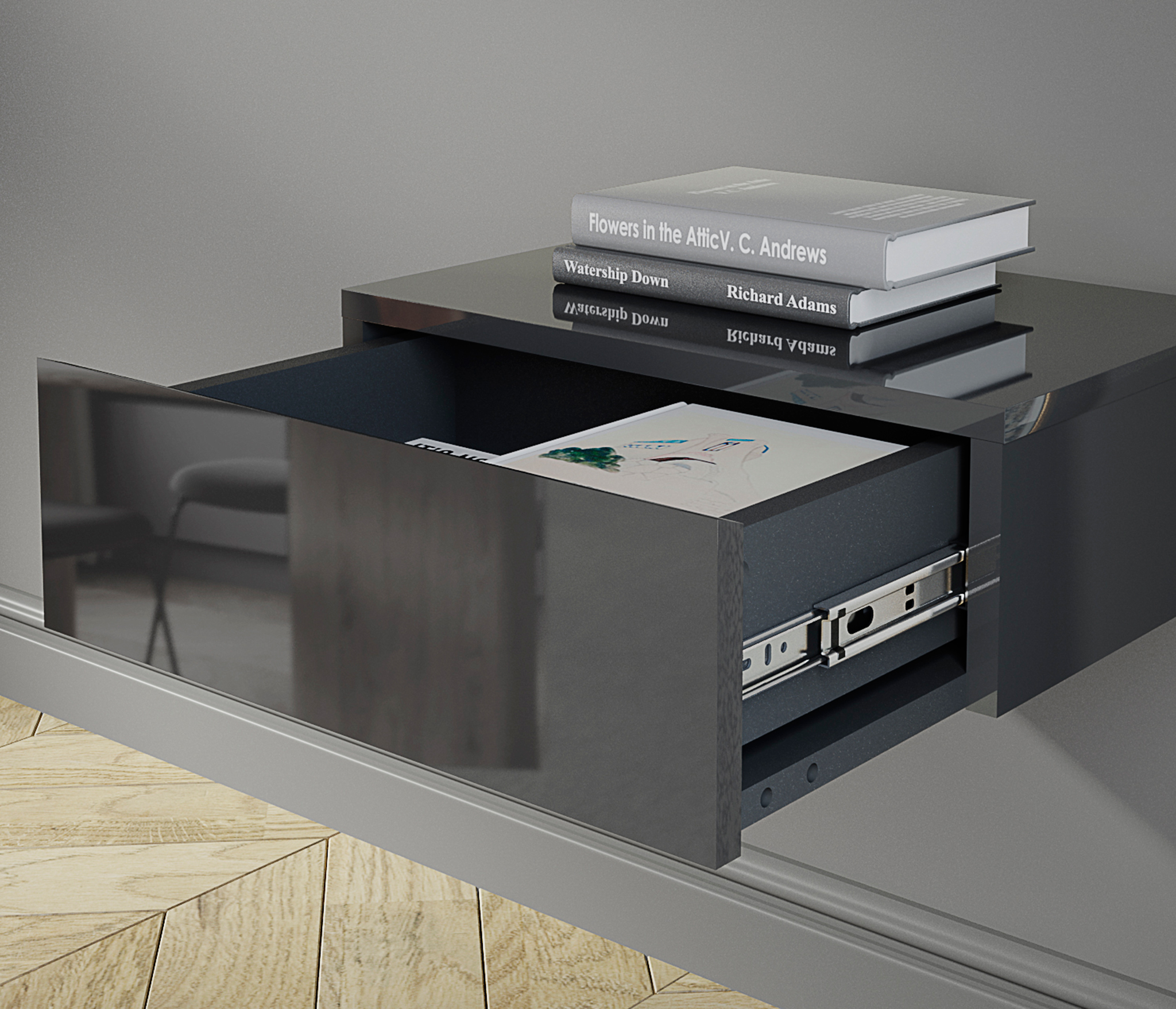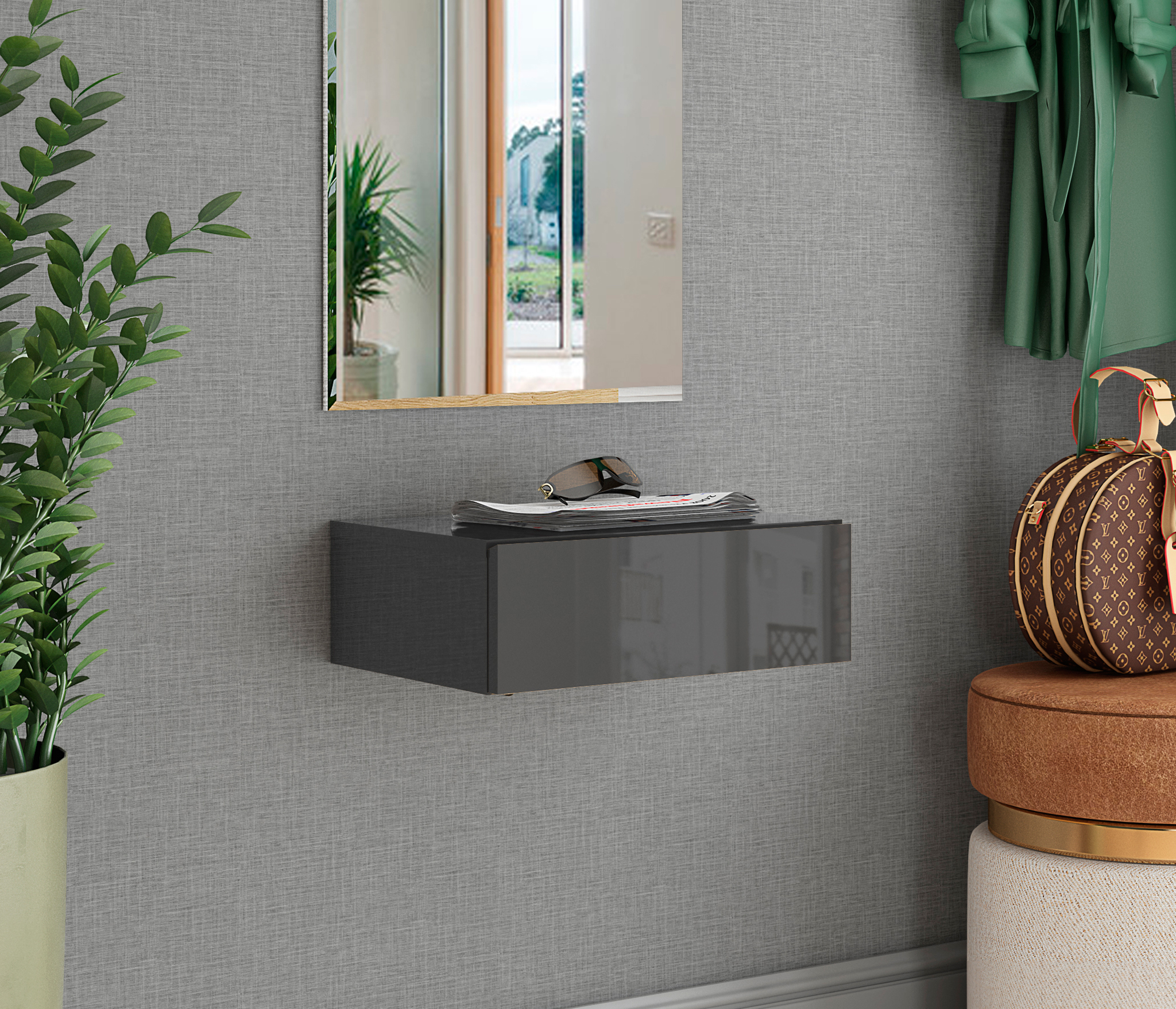 Тумба навесная с 1 ящиком Кафом (Графит глянец)