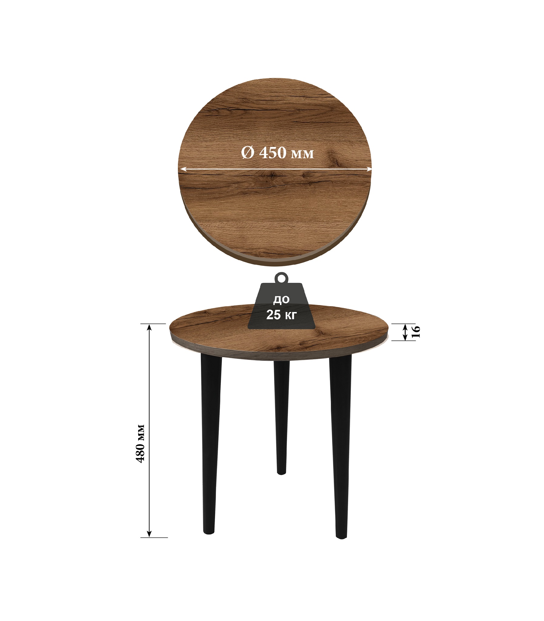Размер: В-480 мм, Ш-450 мм, Г-450 мм.