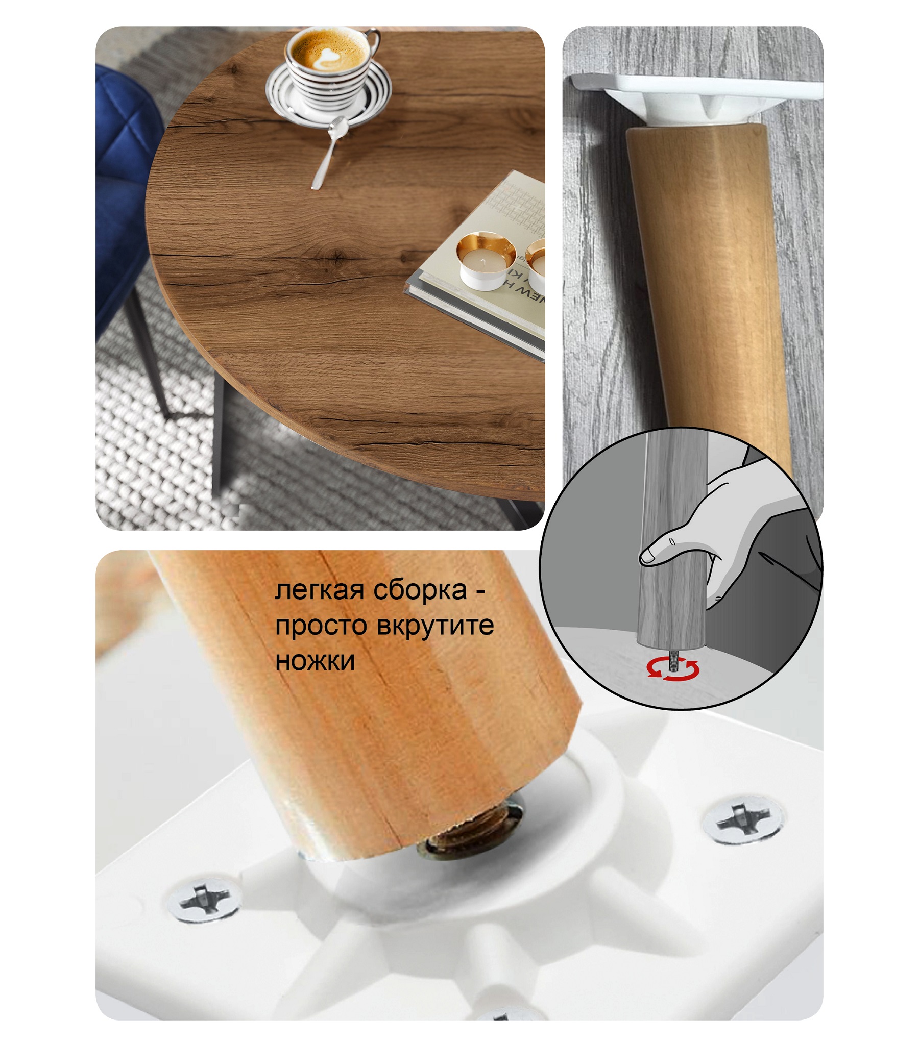 Журнальный стол с круглой столешницей - стильный элемент интерьера.