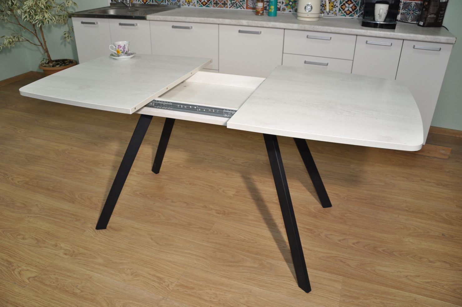 Стол легко раздвигается. Стол с прямоугольной столешницей.