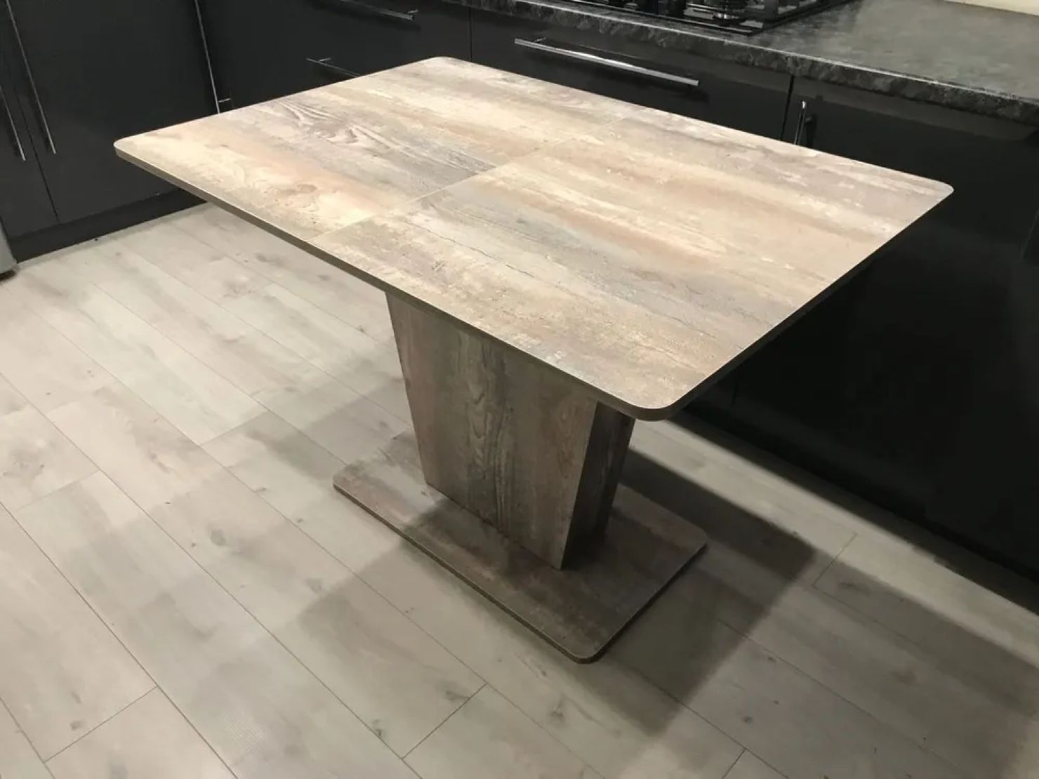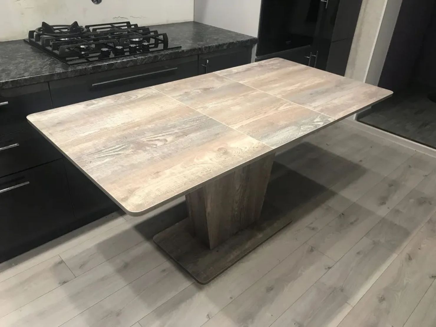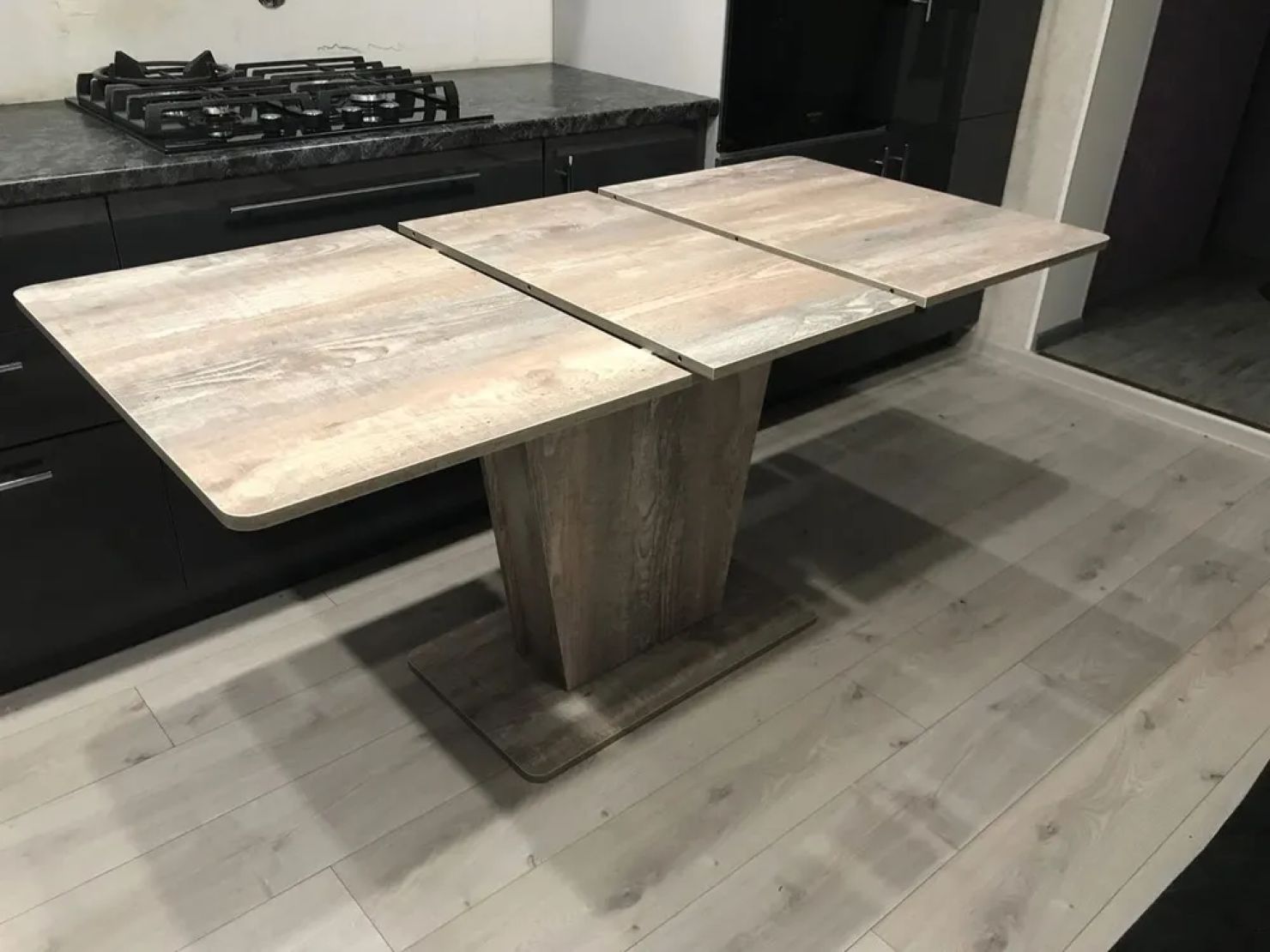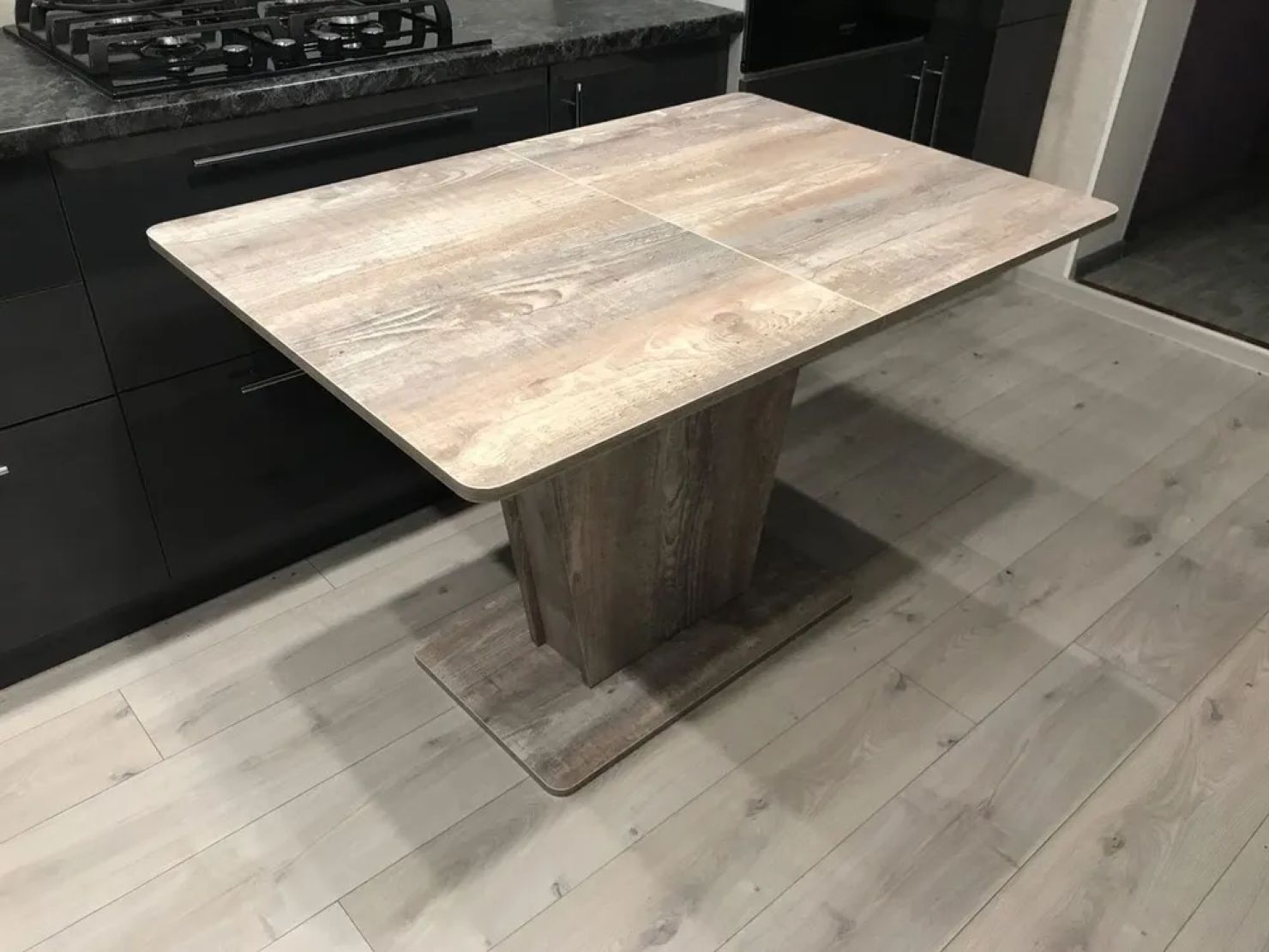 Стол легко раздвигается. Опора выполнена из ЛДСП в цвет столешницы.