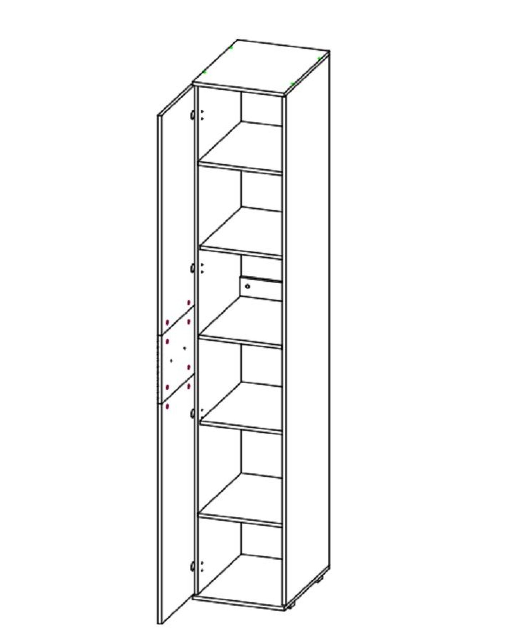 Шкаф-пенал Сити 1 - дополнит интерьер гостиной, спальни или любой другой комнаты. Внутри шкаф оборудован полками. Размеры изделия: ШхГхВ: 400 x 540 x 2272мм. Материал изготовления: ЛДСП, вставка МДФ.