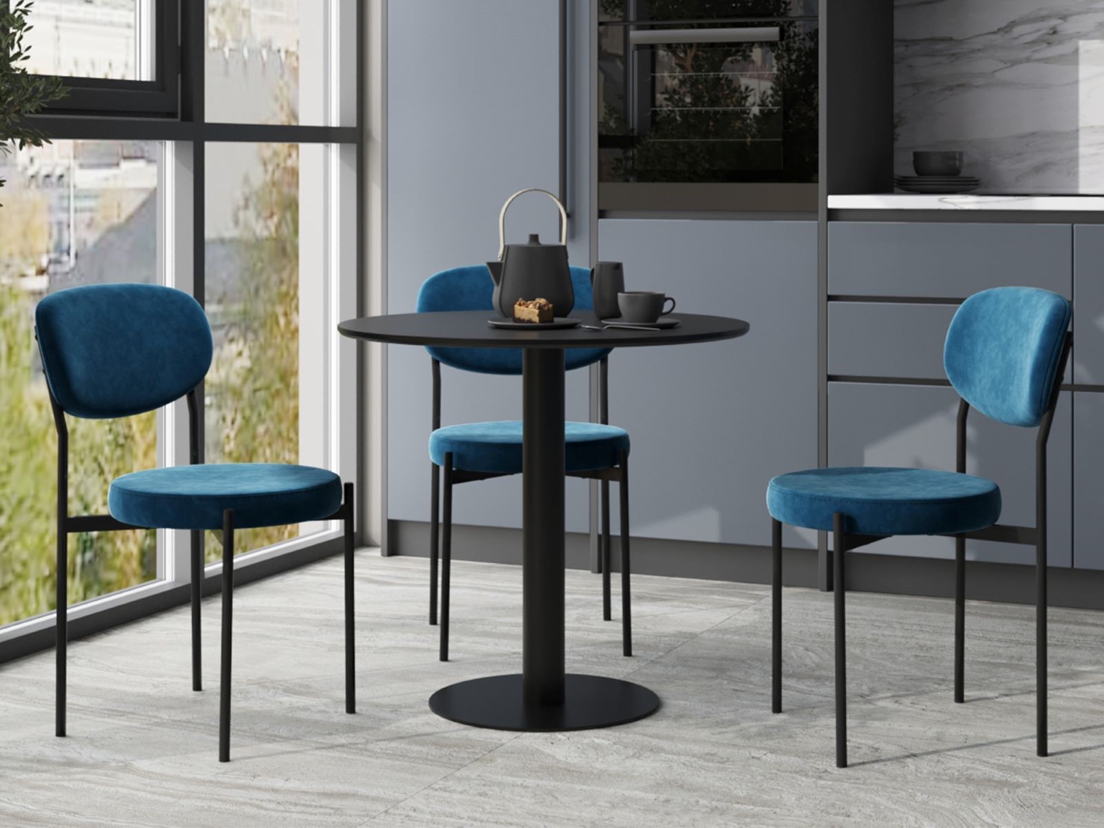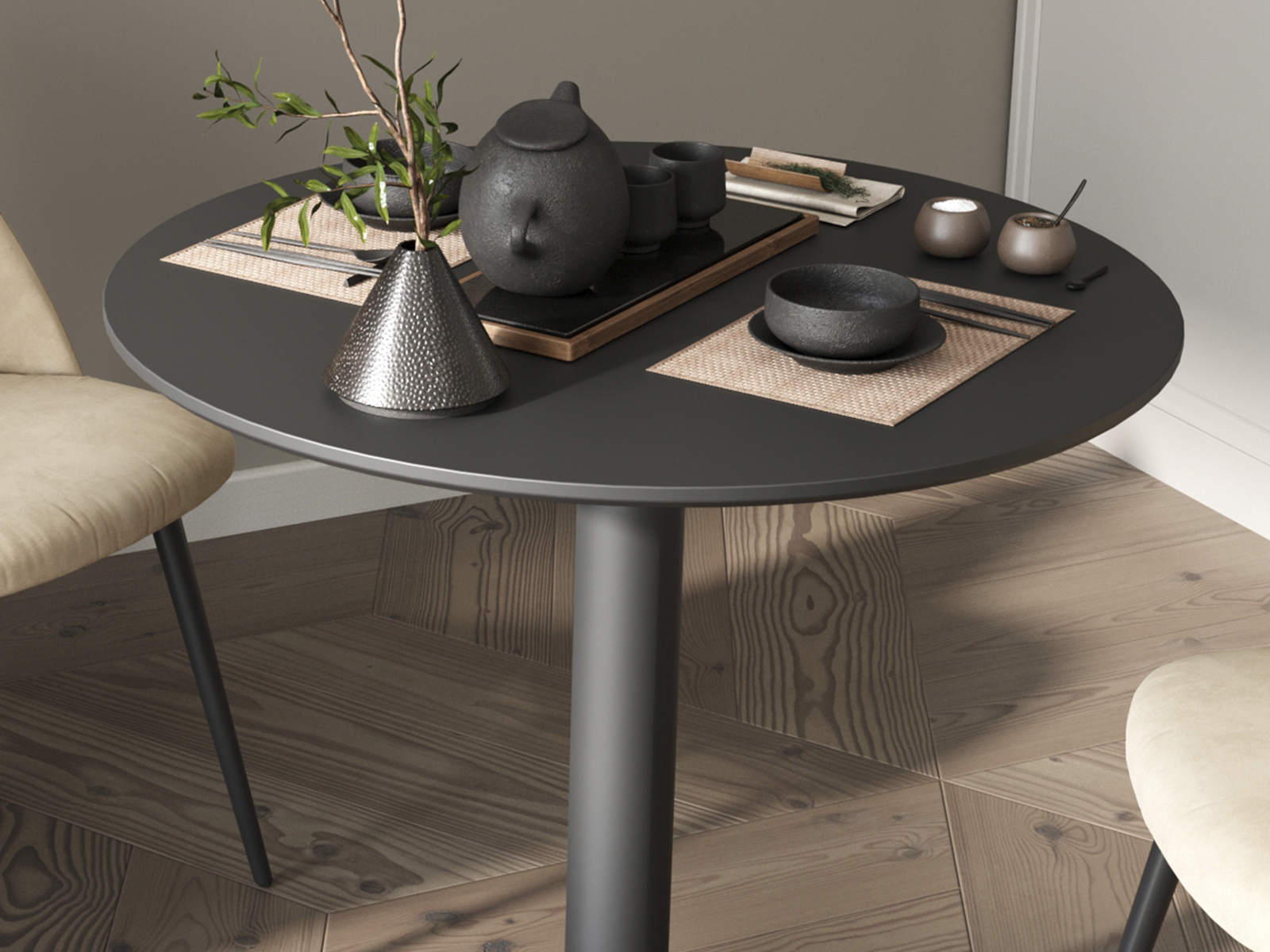 Стильная модель обеденного стола с плавными очертаниями украсит кухню, столовую, дачную террасу или современное кафе. Стильная ножка изготовлена из металла в черном цвете, диаметр столешницы 80 см.