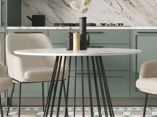 Стильный стол с металлическим основанием. Круглая столешница с рисунком белого мрамора выполнена из МДФ - прочного, экологически безопасного материала, который устойчив к перепадам температур и повышенной влажности. Поверхность столешницы декорирована рисунком белого мрамора, который идеально сочетается с металлическим основанием в золотом цвете. Защитные подпятники в основании предотвращают порчу напольного покрытия. Разрешенная нагрузка до: 80 кг. Диаметр основания стола: 110 см. Толщина столешницы: 1.8 см