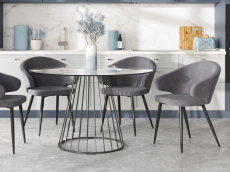Стильный стол с металлическим основанием. Круглая столешница с рисунком белого мрамора выполнена из МДФ - прочного, экологически безопасного материала, который устойчив к перепадам температур и повышенной влажности. Поверхность столешницы декорирована рисунком белого мрамора, который идеально сочетается с металлическим основанием в золотом цвете. Защитные подпятники в основании предотвращают порчу напольного покрытия. Разрешенная нагрузка до: 80 кг. Толщина столешницы: 1 см. Высота стола максимальная: 75 см. Диаметр стола: 120 см.