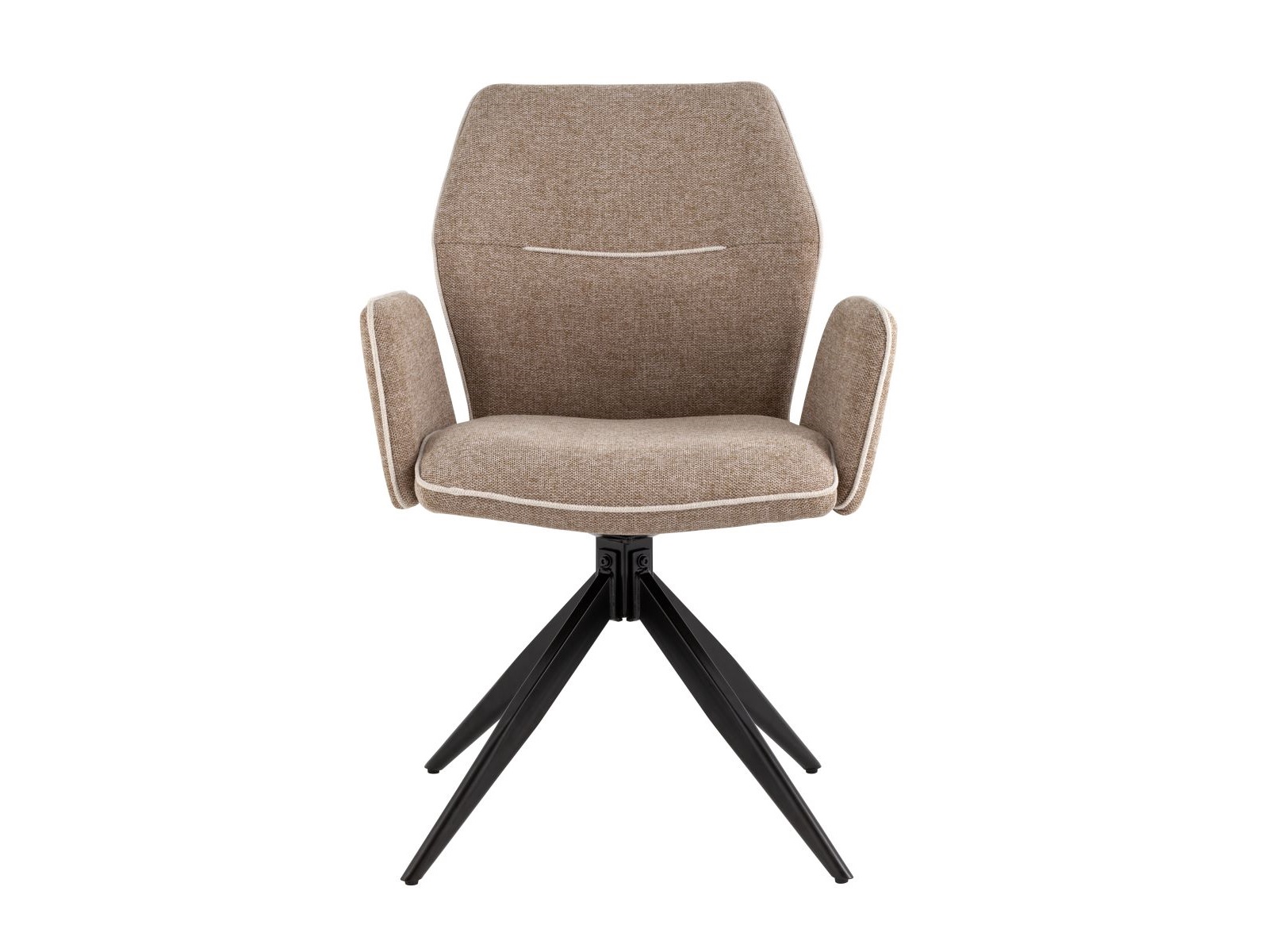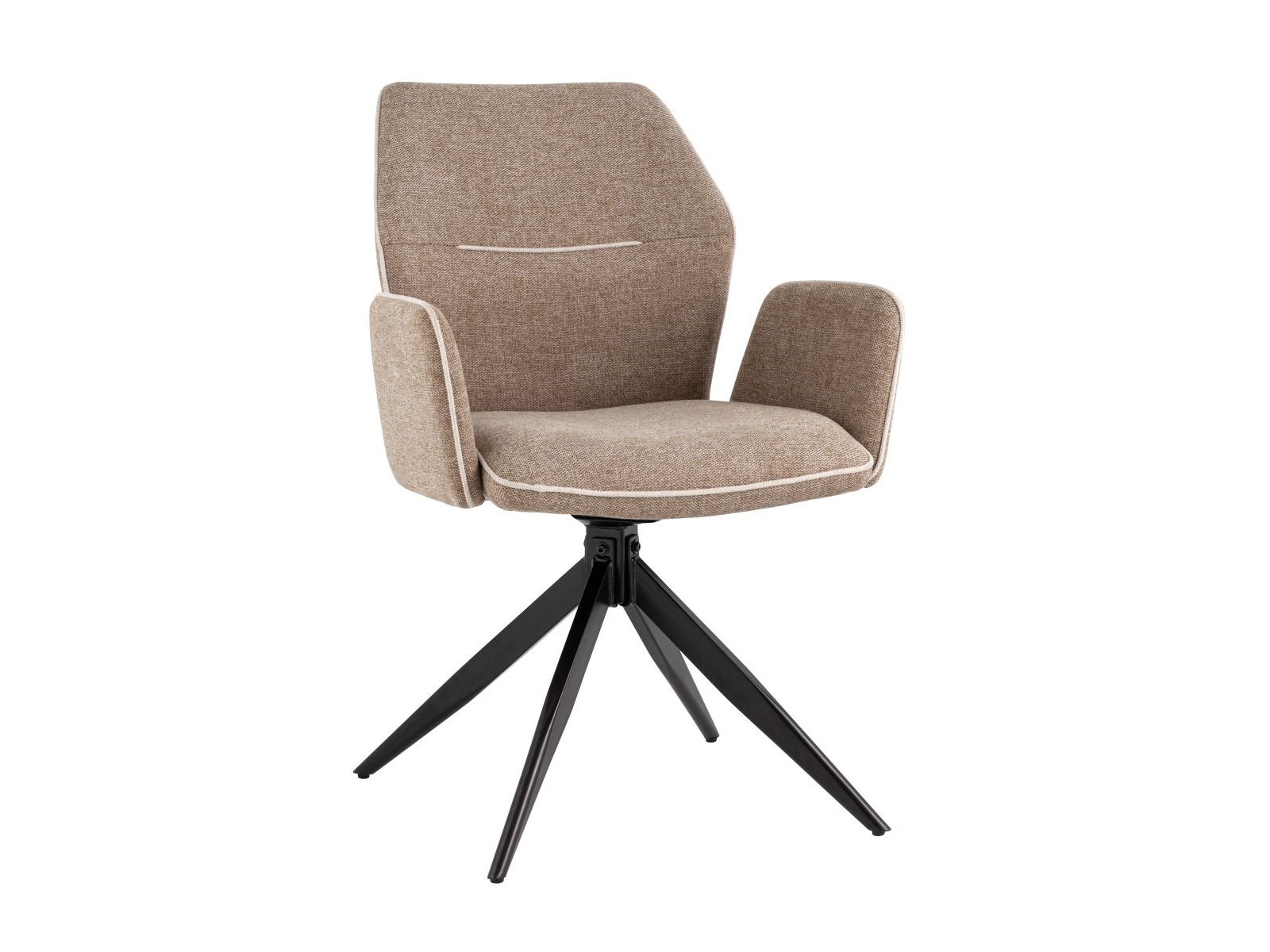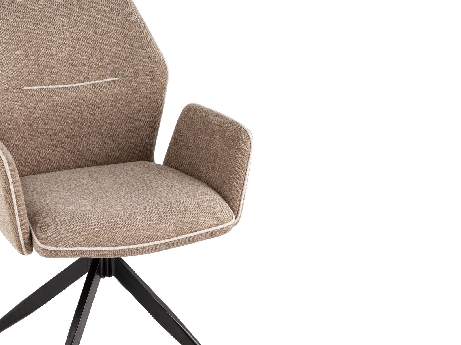 Мягкий стул со спинкой анатомической формы и удобными подлокотниками подарит комфорт и уют. Тканевая обивка оформлена декоративным кантом. Прочные ножки изготовлены из металла в черном цвете, поэтому обеспечивают хорошую устойчивость и делают стул оригинальным. Подпятники на ножках препятствуют скольжению и помогут защитить напольное покрытие от царапин. Изделие будет прекрасно смотреться как отдельный предмет мебели, так и в комплекте с обеденным или письменным столом.