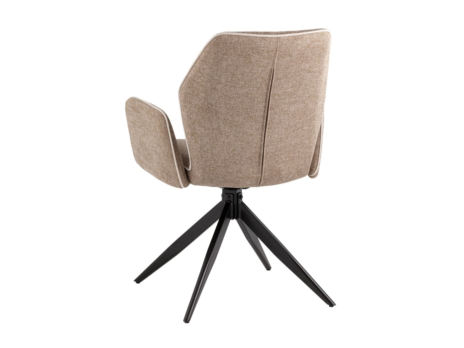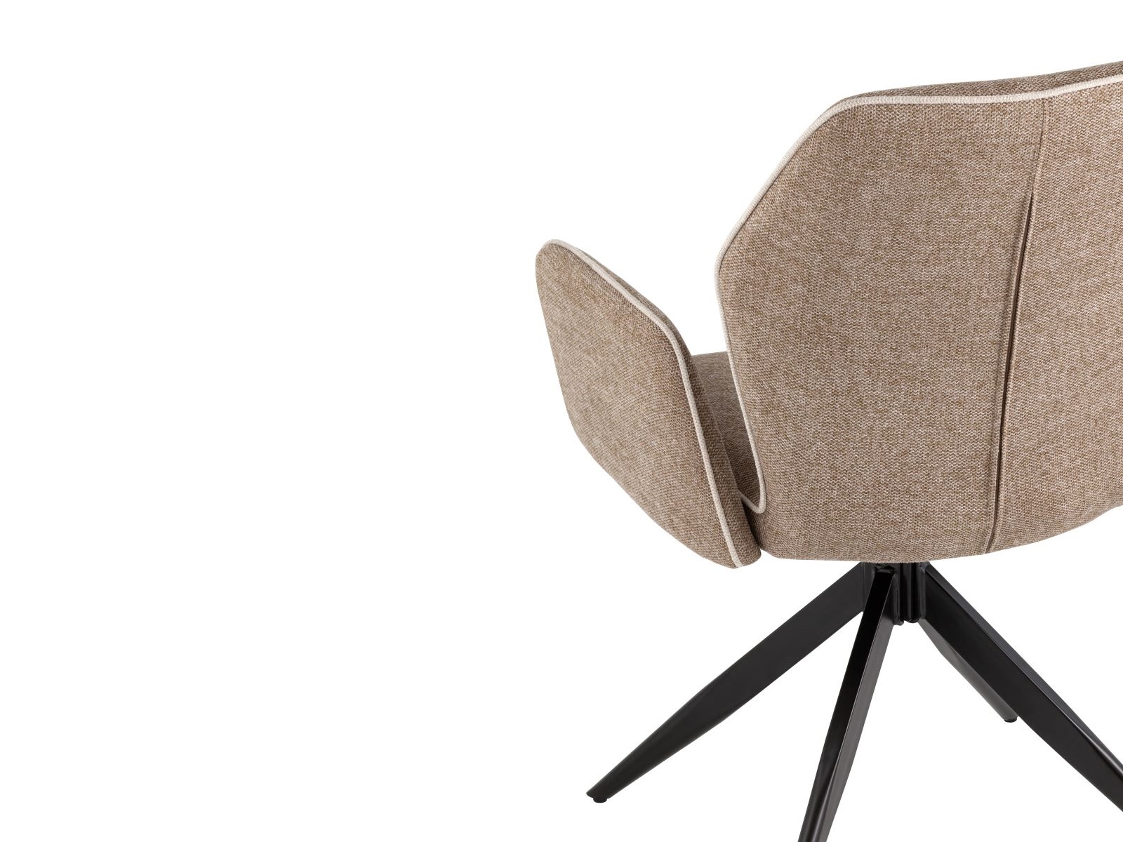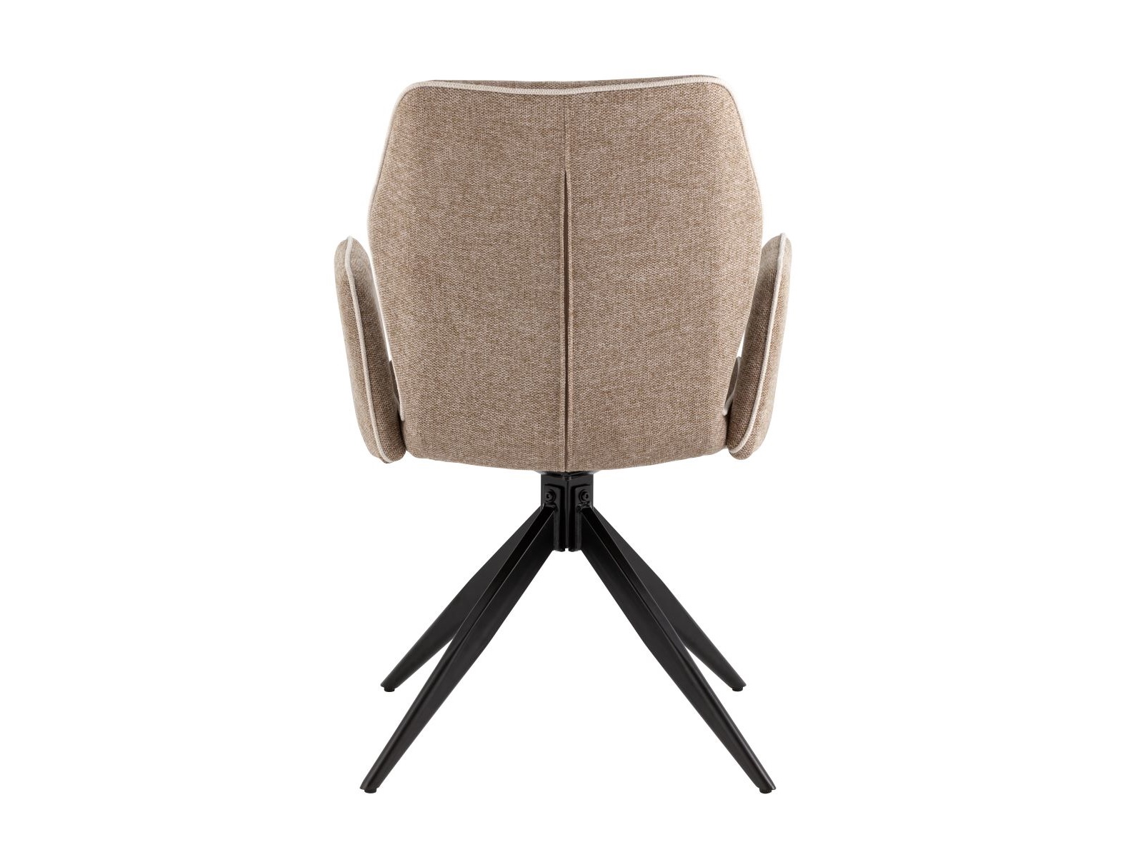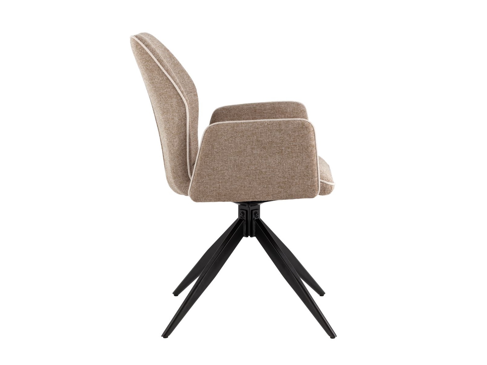 Мягкий стул со спинкой анатомической формы и удобными подлокотниками подарит комфорт и уют. Тканевая обивка оформлена декоративным кантом. Прочные ножки изготовлены из металла в черном цвете, поэтому обеспечивают хорошую устойчивость и делают стул оригинальным. Подпятники на ножках препятствуют скольжению и помогут защитить напольное покрытие от царапин. Изделие будет прекрасно смотреться как отдельный предмет мебели, так и в комплекте с обеденным или письменным столом.