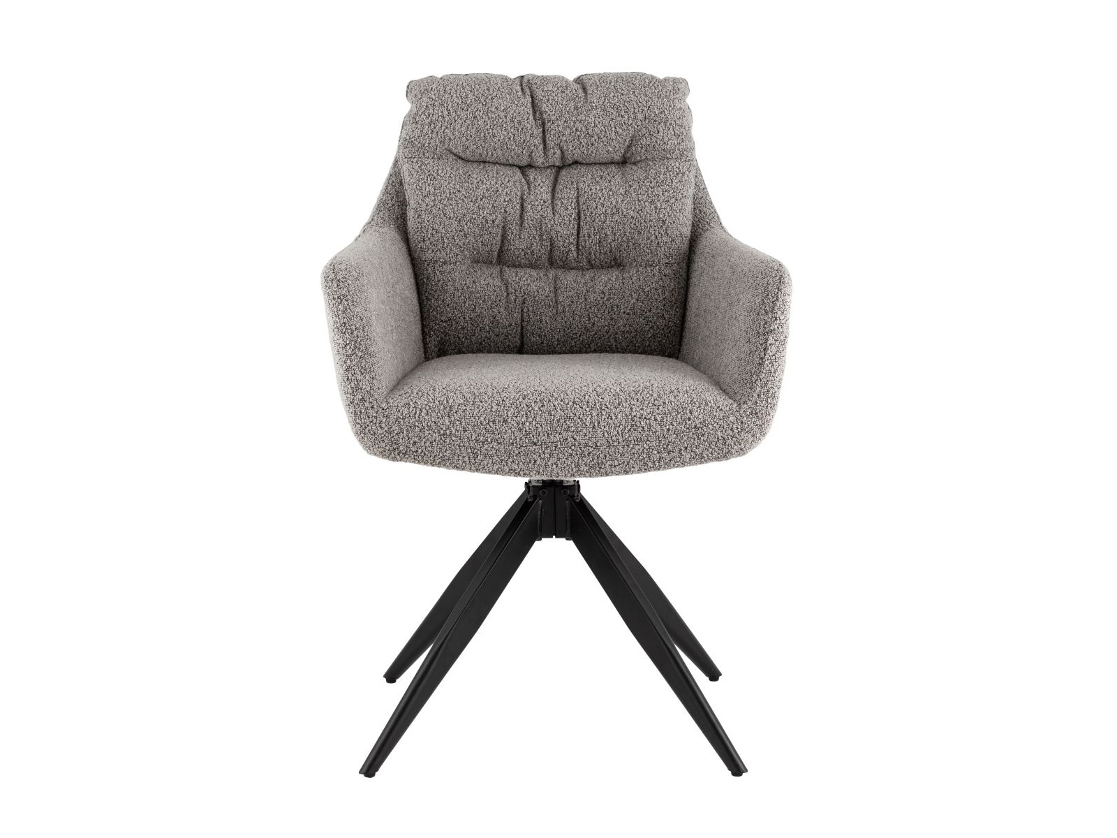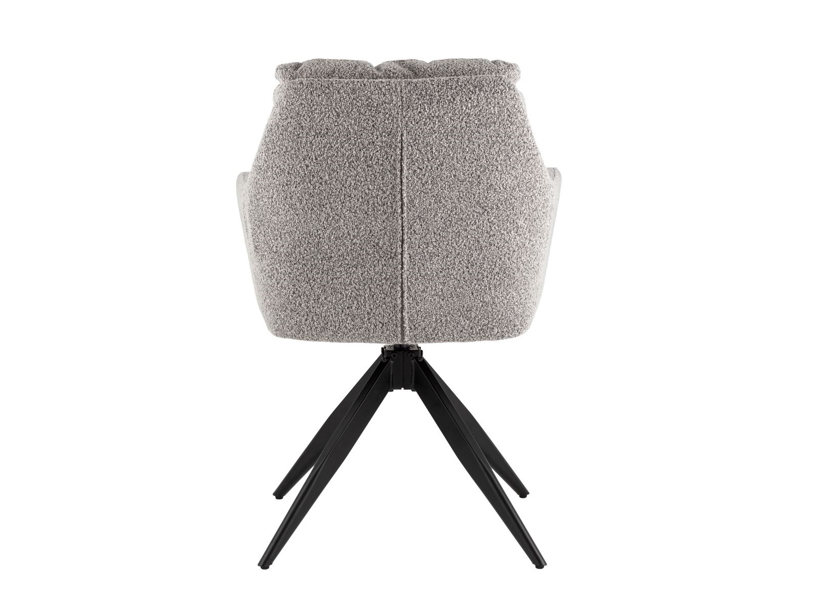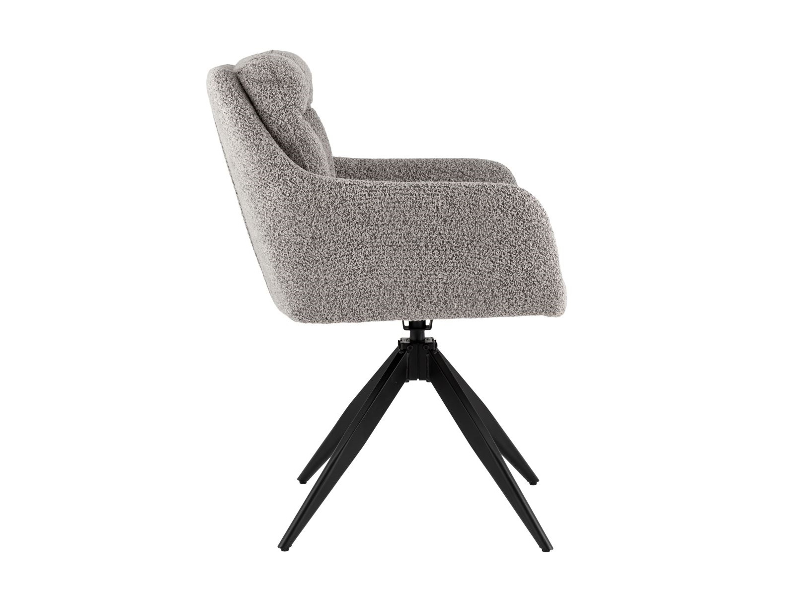 Материалы и удобство. Обивка из ткани букле добавляет текстуры и создаёт приятные тактильные ощущения, делая стул особенно комфортным для сидения. Мягкое сиденье обеспечивает дополнительное удобство, а подлокотники создают ощущение поддержки и уюта, идеально подходя для длительного пребывания за столом.
