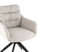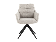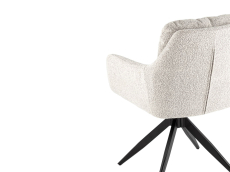 Материалы и удобство. Обивка из ткани букле добавляет текстуры и создаёт приятные тактильные ощущения, делая стул особенно комфортным для сидения. Мягкое сиденье обеспечивает дополнительное удобство, а подлокотники создают ощущение поддержки и уюта, идеально подходя для длительного пребывания за столом.