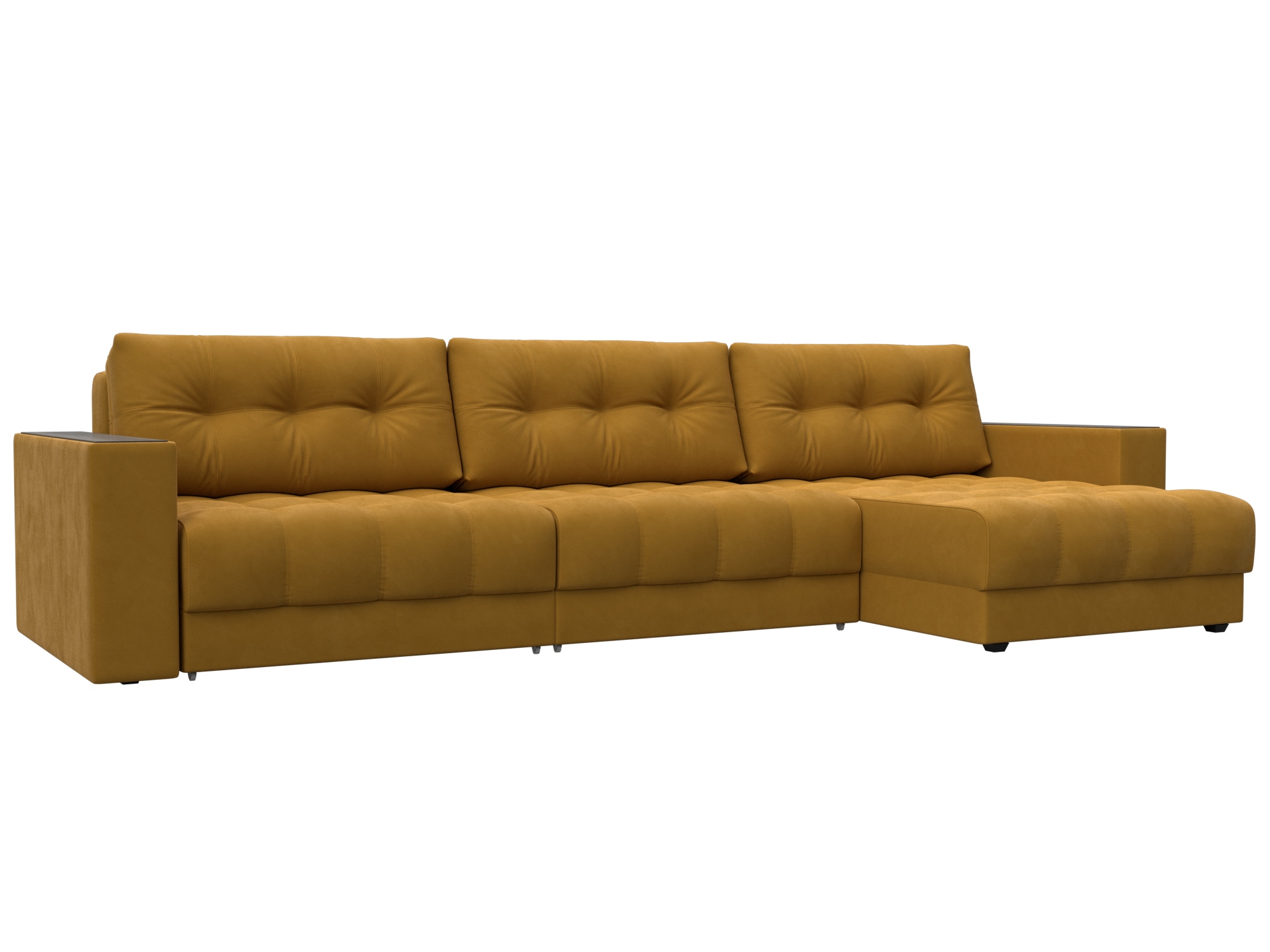 Диван угловой с декором Лига-049 НПБ Лонг, велюр BRUT (Желтый) Код I0000432555
