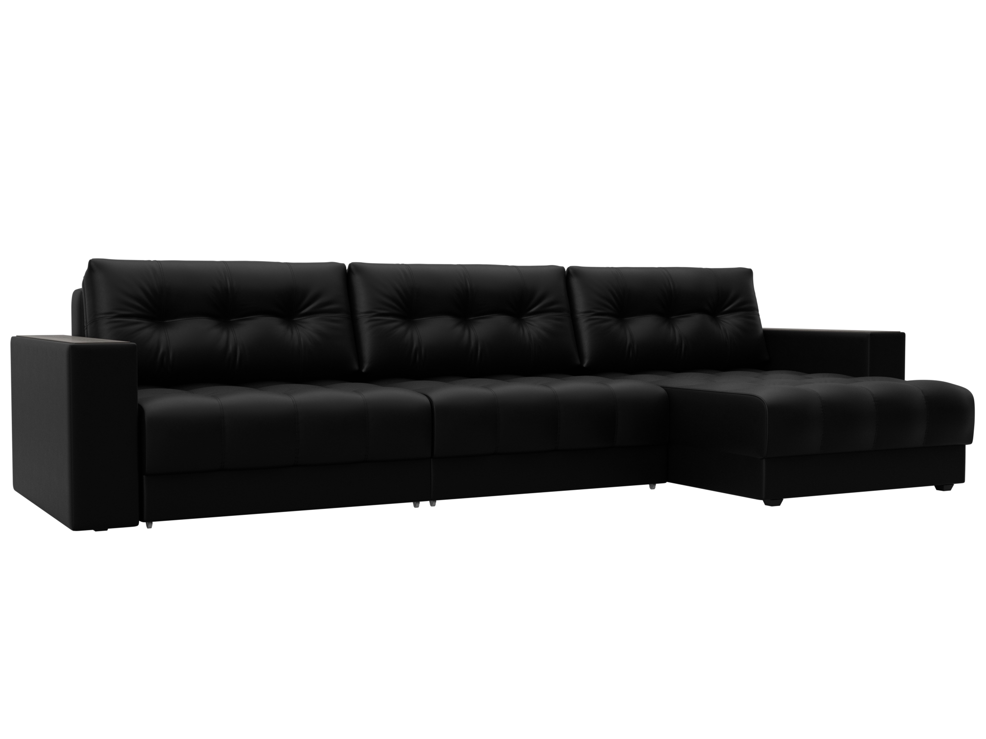 Диван угловой с декором Лига-049 НПБ Лонг, экокожа GRIFON (Черный) Код I0000432586