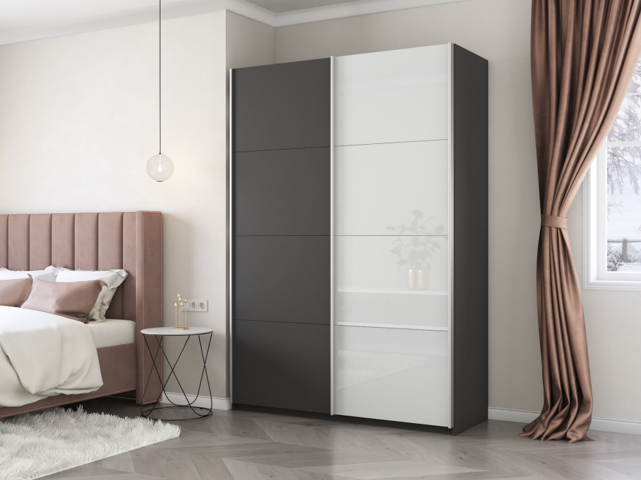 Отзывы о Столплит Шкаф-купе Прайм 2х дверный ДСП/Белый Глянец 160х57х230 Темно-серый