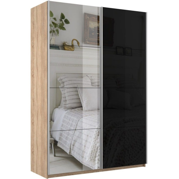 Шкаф-купе Прайм 2х дверный Зеркало/Стекло черное 140х57х230 (Дуб Сонома)