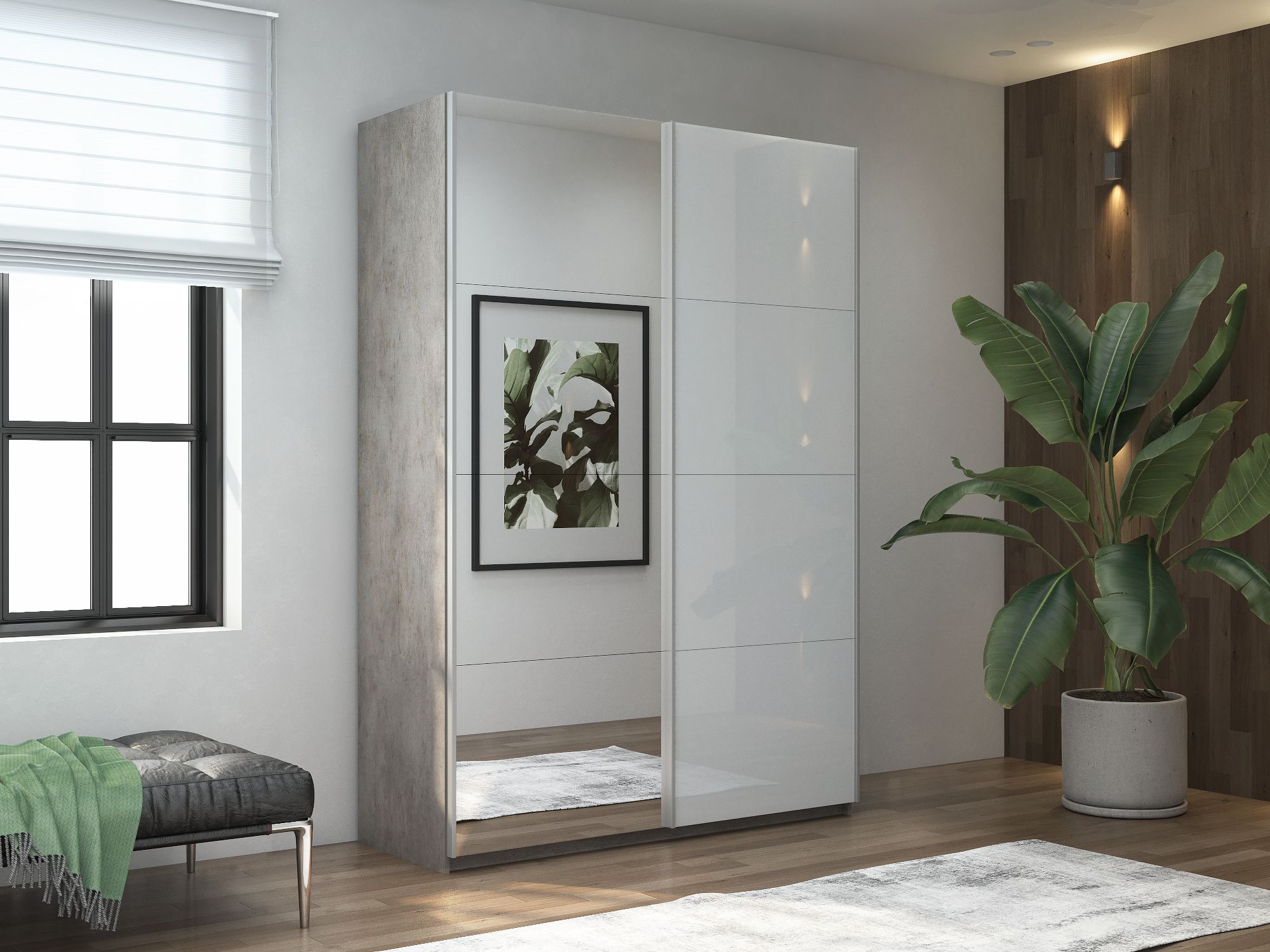 Отзывы о Столплит Шкаф-купе Прайм 2х дверный Зеркало/Белый Глянец 140х57х230 Бетон