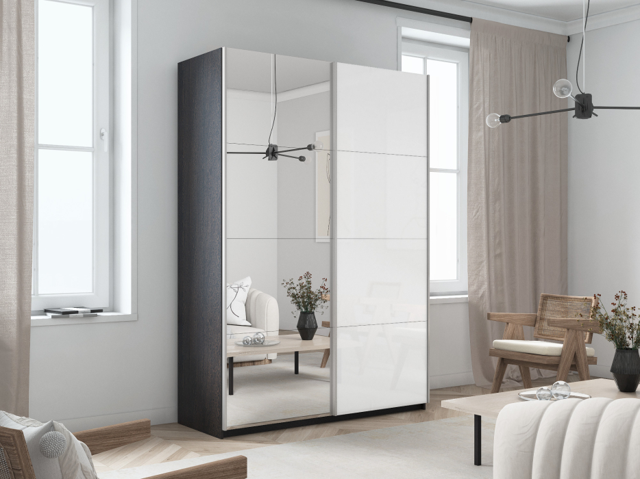 Отзывы о Столплит Шкаф-купе Прайм 2х дверный Зеркало/Белый Глянец 140х57х230 Венге