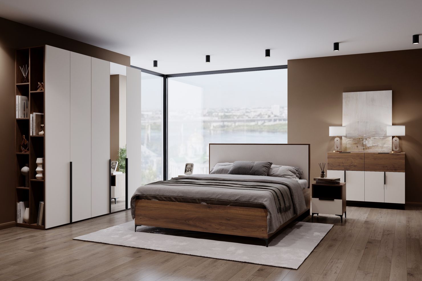 Внутри шкаф оборудован 7 полками для одежды и белья и штангой под плечики.