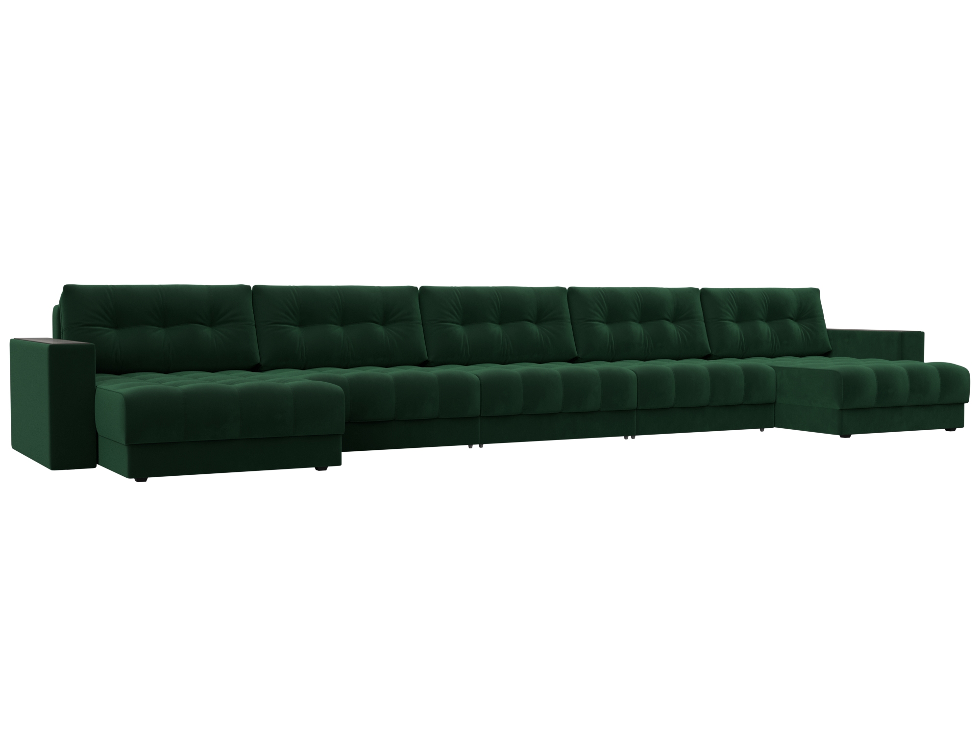 Диван П-образный с декором Лига-049 НПБ Мегалонг, велюр SEVEN (Зеленый) Код I0000432801