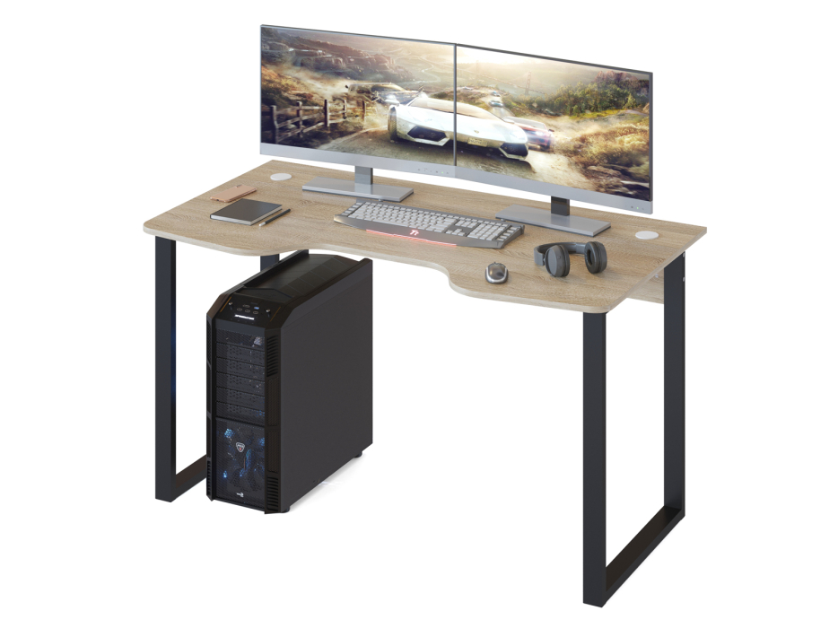 На игровом компьютерном столе КСТ-19 достаточно места для любой оргтехники или установки сразу двух мониторов. Металлические опоры обеспечивают прочность конструкции, а поверхность с анатомическим вырезом позволяет расположиться так, чтобы локти всегда оставались на столе. С обеих сторон предусмотрены отверстия с заглушками для вывода проводов.