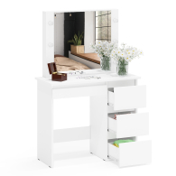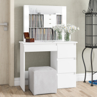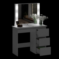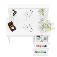 Под столешницей справа расположена тумба с тремя выдвижными ящиками на шариковых направляющих, обеспечивающие плавное и бесшумное открытие. Ящики удобны для хранения косметики, аксессуаров и необходимых мелочей.
