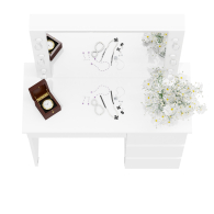 Особенностью этого косметического стола являются отверстия для установки подсветки – по три с каждой стороны от зеркала. Это позволяет легко организовать равномерное освещение лица, что особенно важно при нанесении макияжа или выполнении уходовых процедур. В комплекте уже есть всё необходимое для подключения подсветки - выключатель, трёхметровый провод, штепсельная вилка, прижимные кольца и шесть патронов E14. Лампочки с цоколем Е14 приобретаются отдельно, что позволяет Вам самостоятельно выбрать оптимальную яркость, мощность и цветовую температуру, подходящую именно для вашего интерьера. Это не только удобное решение, но и возможность создать атмосферу, которая будет максимально комфортной для Вас. Кроме того, отсутствие лампочек в комплекте исключает риск их повреждения при транспортировке.