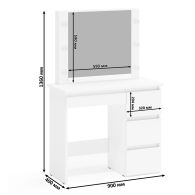Габаритные размеры стола косметического (ШхГхВ): 90х40х136 см.