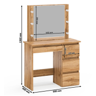 Габаритные размеры стола косметического (ШхГхВ): 90х40х136 см.