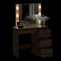 Под столешницей справа расположена тумба с тремя выдвижными ящиками на шариковых направляющих, обеспечивающие плавное и бесшумное открытие. Ящики удобны для хранения косметики, аксессуаров и необходимых мелочей.