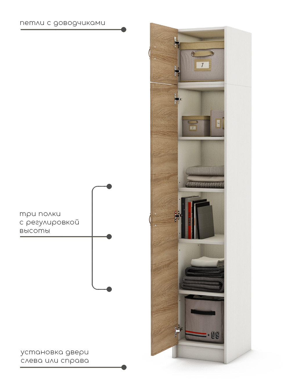 Отзывы о Столплит Шкаф Август-1 с антресолью Белое дерево/дуб сонома