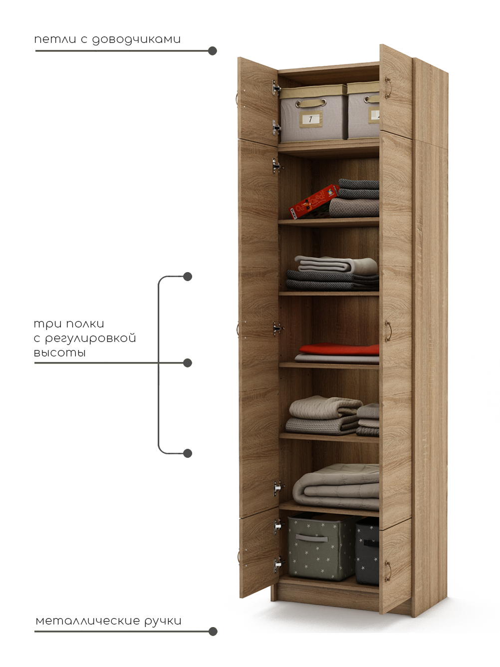 Вы ищете идеальный шкаф для хранения своей одежды? Деревянный распашной шкаф Август — идеальное решение для вас! Этот шикарный шкаф обладает всеми необходимыми функциями и станет прекрасным дополнением к вашей комнате, прихожей или даже балкону. Деревянный распашной шкаф — это не только функциональное, но и элегантное решение для хранения вашей одежды. Он изготовлен из качественной ЛДСП, что делает его прочным и надежным. Вы можете быть уверены, что этот шкаф прослужит вам долгие годы. Особенностью этого шкафа является его уникальная конструкция. Распашные двери позволяют легко получить доступ к вашей одежде, а полки, вешалка и ящики создают идеальную организацию внутри шкафа. Вы сможете легко найти нужную вещь без лишних усилий. Распашной шкаф также прекрасно подходит для различных помещений. Он стильно впишется в вашу комнату, придаст прихожей элегантность и даже может быть использован на балконе для хранения сезонной одежды. Это универсальное решение, которое подойдет для любого интерьера. Мы понимаем, что вы цените не только функциональность, но и внешний вид мебели. Распашной шкаф имеет элегантный дизайн с привлекательными деталями. Он добавит шарма и стиля в вашу комнату, прихожую или балкон. Кроме того, мы предлагаем широкий выбор цветов и отделок шкаф для одежды. Вы сможете выбрать подходящий вариант, который лучше всего соответствует вашему интерьеру и личным предпочтениям. Деревянный распашной шкаф для одежды — это не просто шкаф, это инвестиция в ваш комфорт и организацию. Выберите шкаф Август и наслаждайтесь его преимуществами уже сегодня!