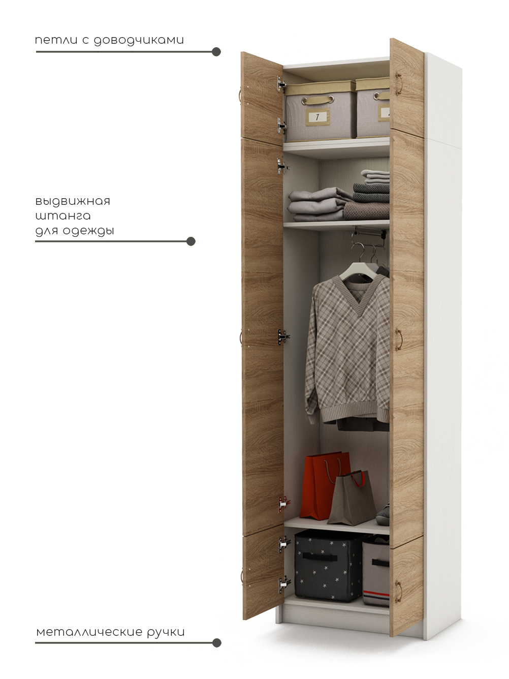 Вы ищете идеальный шкаф для хранения своей одежды? Деревянный распашной шкаф Август — идеальное решение для вас! Этот шикарный шкаф обладает всеми необходимыми функциями и станет прекрасным дополнением к вашей комнате, прихожей или даже балкону. Деревянный распашной шкаф — это не только функциональное, но и элегантное решение для хранения вашей одежды. Он изготовлен из качественной ЛДСП, что делает его прочным и надежным. Вы можете быть уверены, что этот шкаф прослужит вам долгие годы. Особенностью этого шкафа является его уникальная конструкция. Распашные двери позволяют легко получить доступ к вашей одежде, а полки, вешалка и ящики создают идеальную организацию внутри шкафа. Вы сможете легко найти нужную вещь без лишних усилий. Распашной шкаф также прекрасно подходит для различных помещений. Он стильно впишется в вашу комнату, придаст прихожей элегантность и даже может быть использован на балконе для хранения сезонной одежды. Это универсальное решение, которое подойдет для любого интерьера. Мы понимаем, что вы цените не только функциональность, но и внешний вид мебели. Распашной шкаф имеет элегантный дизайн с привлекательными деталями. Он добавит шарма и стиля в вашу комнату, прихожую или балкон. Кроме того, мы предлагаем широкий выбор цветов и отделок шкаф для одежды. Вы сможете выбрать подходящий вариант, который лучше всего соответствует вашему интерьеру и личным предпочтениям. Деревянный распашной шкаф для одежды — это не просто шкаф, это инвестиция в ваш комфорт и организацию. Выберите шкаф Август и наслаждайтесь его преимуществами уже сегодня!