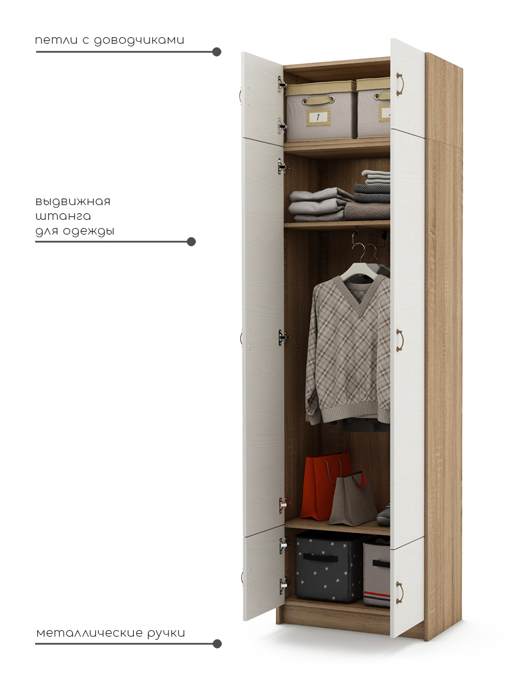 Вы ищете идеальный шкаф для хранения своей одежды? Деревянный распашной шкаф Август — идеальное решение для вас! Этот шикарный шкаф обладает всеми необходимыми функциями и станет прекрасным дополнением к вашей комнате, прихожей или даже балкону. Деревянный распашной шкаф — это не только функциональное, но и элегантное решение для хранения вашей одежды. Он изготовлен из качественной ЛДСП, что делает его прочным и надежным. Вы можете быть уверены, что этот шкаф прослужит вам долгие годы. Особенностью этого шкафа является его уникальная конструкция. Распашные двери позволяют легко получить доступ к вашей одежде, а полки, вешалка и ящики создают идеальную организацию внутри шкафа. Вы сможете легко найти нужную вещь без лишних усилий. Распашной шкаф также прекрасно подходит для различных помещений. Он стильно впишется в вашу комнату, придаст прихожей элегантность и даже может быть использован на балконе для хранения сезонной одежды. Это универсальное решение, которое подойдет для любого интерьера. Мы понимаем, что вы цените не только функциональность, но и внешний вид мебели. Распашной шкаф имеет элегантный дизайн с привлекательными деталями. Он добавит шарма и стиля в вашу комнату, прихожую или балкон. Кроме того, мы предлагаем широкий выбор цветов и отделок шкаф для одежды. Вы сможете выбрать подходящий вариант, который лучше всего соответствует вашему интерьеру и личным предпочтениям. Деревянный распашной шкаф для одежды — это не просто шкаф, это инвестиция в ваш комфорт и организацию. Выберите шкаф Август и наслаждайтесь его преимуществами уже сегодня!