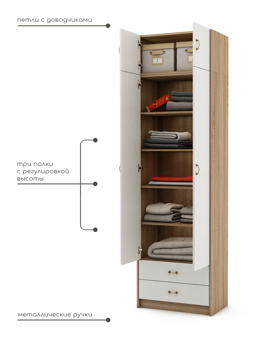Вы ищете идеальный шкаф для хранения своей одежды? Деревянный распашной шкаф Август — идеальное решение для вас! Этот шикарный шкаф обладает всеми необходимыми функциями и станет прекрасным дополнением к вашей комнате, прихожей или даже балкону. Деревянный распашной шкаф — это не только функциональное, но и элегантное решение для хранения вашей одежды. Он изготовлен из качественной ЛДСП, что делает его прочным и надежным. Вы можете быть уверены, что этот шкаф прослужит вам долгие годы. Особенностью этого шкафа является его уникальная конструкция. Распашные двери позволяют легко получить доступ к вашей одежде, а полки, вешалка и ящики создают идеальную организацию внутри шкафа. Вы сможете легко найти нужную вещь без лишних усилий. Распашной шкаф также прекрасно подходит для различных помещений. Он стильно впишется в вашу комнату, придаст прихожей элегантность и даже может быть использован на балконе для хранения сезонной одежды. Это универсальное решение, которое подойдет для любого интерьера. Мы понимаем, что вы цените не только функциональность, но и внешний вид мебели. Распашной шкаф имеет элегантный дизайн с привлекательными деталями. Он добавит шарма и стиля в вашу комнату, прихожую или балкон. Кроме того, мы предлагаем широкий выбор цветов и отделок шкаф для одежды. Вы сможете выбрать подходящий вариант, который лучше всего соответствует вашему интерьеру и личным предпочтениям. Деревянный распашной шкаф для одежды — это не просто шкаф, это инвестиция в ваш комфорт и организацию. Выберите шкаф Август и наслаждайтесь его преимуществами уже сегодня!