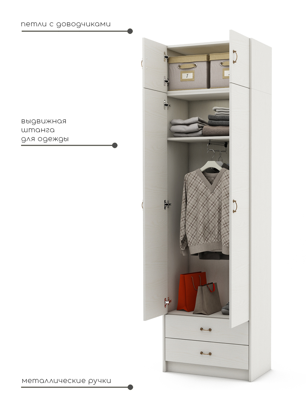 Вы ищете идеальный шкаф для хранения своей одежды? Деревянный распашной шкаф Август — идеальное решение для вас! Этот шикарный шкаф обладает всеми необходимыми функциями и станет прекрасным дополнением к вашей комнате, прихожей или даже балкону. Деревянный распашной шкаф — это не только функциональное, но и элегантное решение для хранения вашей одежды. Он изготовлен из качественной ЛДСП, что делает его прочным и надежным. Вы можете быть уверены, что этот шкаф прослужит вам долгие годы. Особенностью этого шкафа является его уникальная конструкция. Распашные двери позволяют легко получить доступ к вашей одежде, а полки, вешалка и ящики создают идеальную организацию внутри шкафа. Вы сможете легко найти нужную вещь без лишних усилий. Распашной шкаф также прекрасно подходит для различных помещений. Он стильно впишется в вашу комнату, придаст прихожей элегантность и даже может быть использован на балконе для хранения сезонной одежды. Это универсальное решение, которое подойдет для любого интерьера. Мы понимаем, что вы цените не только функциональность, но и внешний вид мебели. Распашной шкаф имеет элегантный дизайн с привлекательными деталями. Он добавит шарма и стиля в вашу комнату, прихожую или балкон. Кроме того, мы предлагаем широкий выбор цветов и отделок шкаф для одежды. Вы сможете выбрать подходящий вариант, который лучше всего соответствует вашему интерьеру и личным предпочтениям. Деревянный распашной шкаф для одежды — это не просто шкаф, это инвестиция в ваш комфорт и организацию. Выберите шкаф Август и наслаждайтесь его преимуществами уже сегодня!