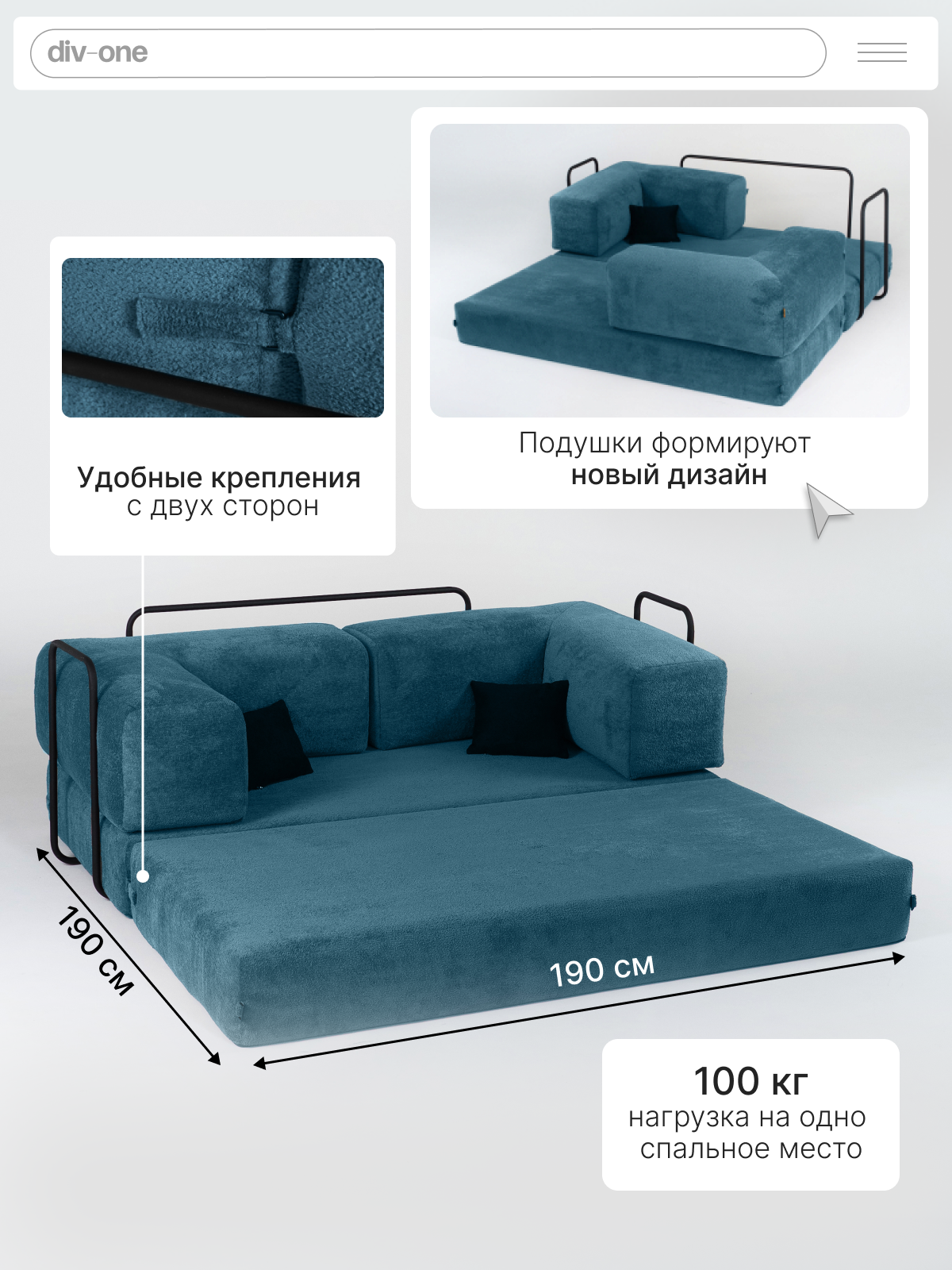 «Клауд» — это большой диван трансформер для каждого. Он станет идеальным двухспальным диваном со спинкой для молодежи, надежным семейным центром для взрослых и безопасной игровой зоной для детей. Представьте его на вашей даче, где он подарит комфортный отдых после насыщенного дня, или на утепленном балконе, превращенном в личный оазис для чтения и релаксации.