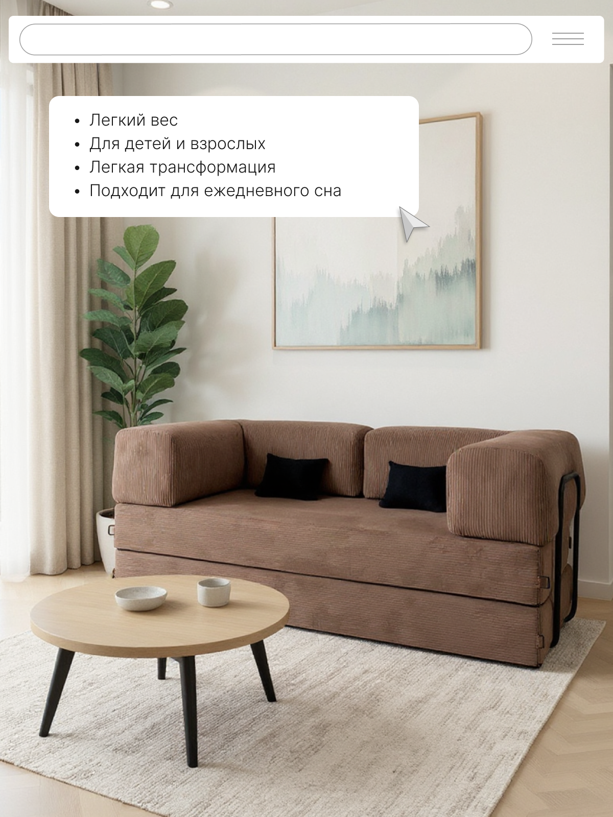 Бескаркасный раскладной «Реймонд» — это не просто предмет мебели, а продуманное до мелочей решение для тех, кто ищет идеальный баланс между изысканным комфортом и повседневной функциональностью. Его лаконичный дизайн с подлокотниками гармонично впишется в любую комнату, будь то просторная гостиная, где он станет центром притяжения для семьи и друзей, уютная спальня или даже стильная кухня-студия. Эта складная прямая модель — универсальный ответ на вопрос, как эффективно использовать каждый сантиметр вашего дома. Он за пару легких движений трансформируется в полноценное и удивительно удобное спальное место, готовое принять задержавшихся гостей или служить вам кроватью для ежедневного здорового сна.