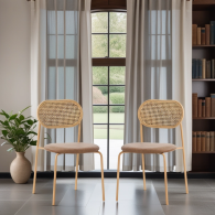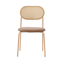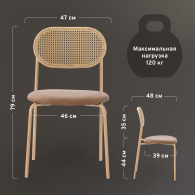 Этот стул с овальной формой сиденья выделяется спинкой из ротанга, придающей ему уникальный и стильный вид, делая его отличным выбором как стул из ротанга для вашей кухни или гостиной. С высотой сиденья 41 см, он обеспечивает идеальное положение для комфортного сидения, подходя под любой стол.