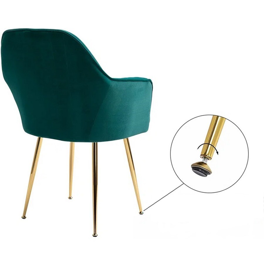 Бренд HESBY представляет вашему вниманию стильный и комфортный мягкий стул-кресло Tranquil Synchrony с подлокотниками, который станет изюминкой вашего интерьера. Обивка из мягкого велюра насыщенного цвета придаст уют и элегантность вашему пространству, а золотые металлические ножки добавят нотку роскоши и современности.Кресло выполнено с акцентом на максимальный комфорт: мягкое сиденье и удобные подлокотники создают идеальные условия для отдыха и расслабления. Регулируемые подпятники на ножках обеспечивают устойчивость и позволяют использовать кресло на различных поверхностях, не беспокоясь о неровностях пола.Размеры стула-кресла: высота — 88 см, ширина — 59 см, глубина — 50 см, высота сиденья — 49 см. Максимальная нагрузка составляет 150 кг, что подтверждает надежность и прочность конструкции.Этот стул-кресло идеально подходит как для домашнего интерьера, так и для офисных пространств, комбинируя в себе стиль и функциональность. Сделайте ваше пространство более комфортным и красивым с этим уникальным изделием!
