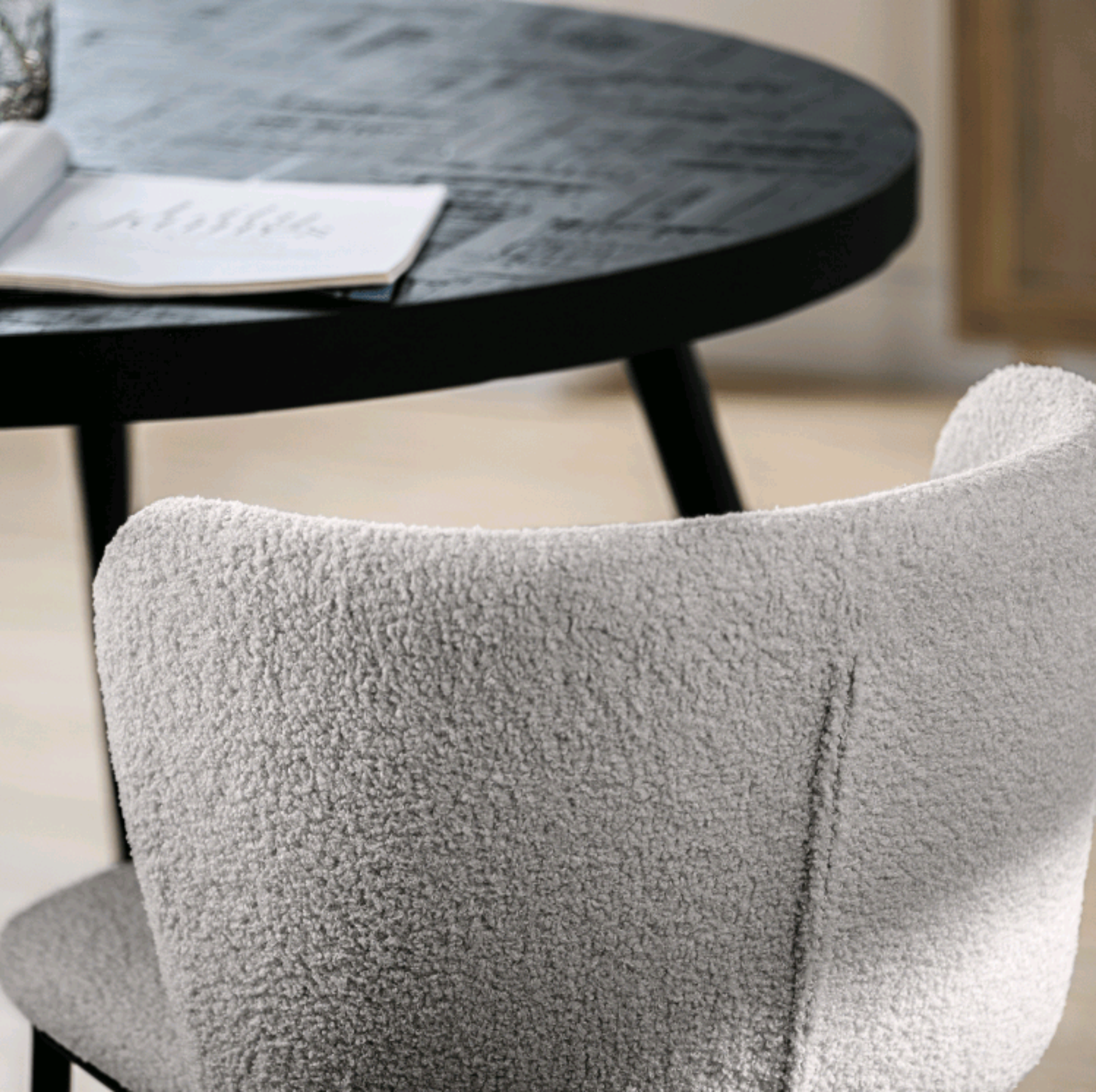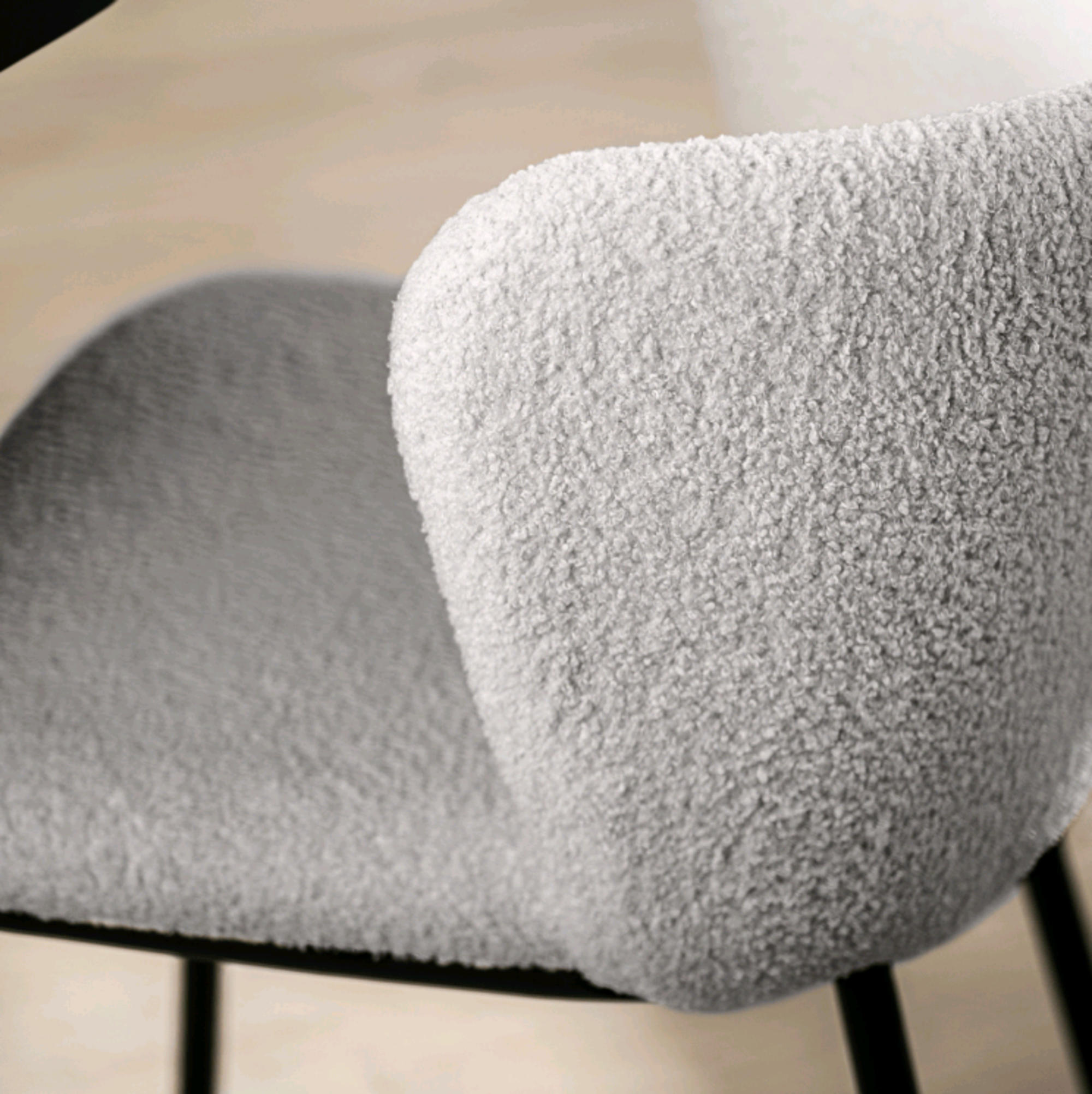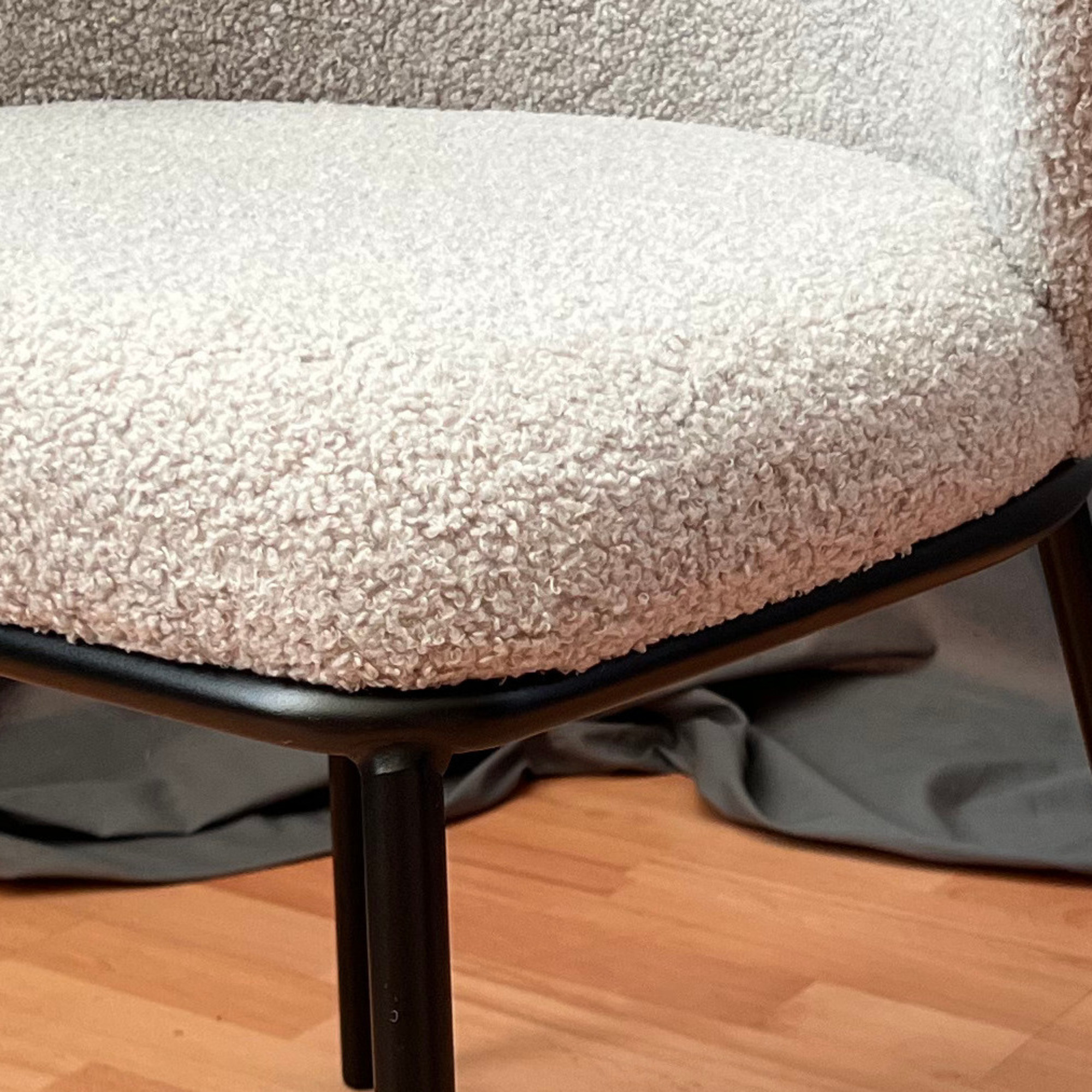 Кресло выполнено в бежевом цвете с черными ножками, что придает ему изысканный и современный вид. Обивка из букле, обеспечивает мягкость и комфорт при использовании.