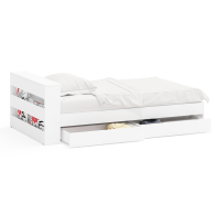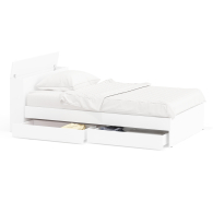 В основании кровати предусмотрены два ящика на роликовых направляющих, которые обеспечивают легкое и бесшумное выдвижение.