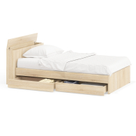 В основании кровати предусмотрены два ящика на роликовых направляющих, которые обеспечивают легкое и бесшумное выдвижение.