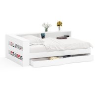 Благодаря выдвижным ящикам, полкам прикроватного блока и удобному отсеку для хранения белья, она поможет организовать пространство и сохранить порядок, а современный лаконичный дизайн гармонично впишется в любой интерьер. Кровать имеет односпальное место 1200×2000 мм с прочным основанием в комплекте. Матрас приобретается отдельно, позволяя выбрать оптимальный уровень жесткости и комфорта. В основании кровати предусмотрены два ящика на роликовых направляющих, которые обеспечивают легкое и бесшумное выдвижение. Это идеальное решение для хранения постельного белья, сезонной одежды или других вещей.