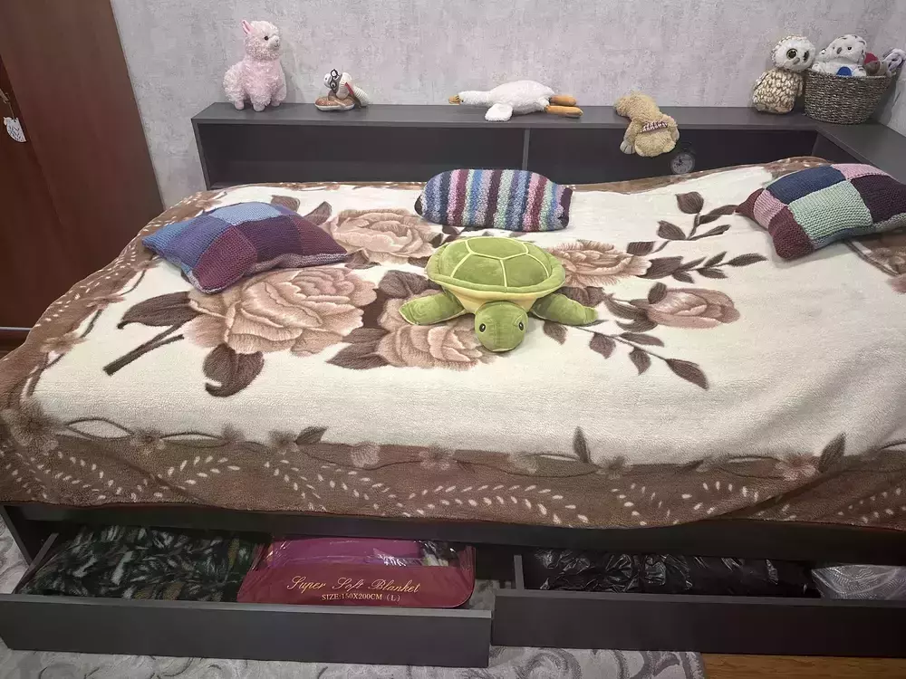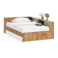 Благодаря выдвижным ящикам, полкам прикроватного блока и удобному отсеку для хранения белья, она поможет организовать пространство и сохранить порядок, а современный лаконичный дизайн гармонично впишется в любой интерьер. Кровать имеет односпальное место 1200×2000 мм с прочным основанием в комплекте. Матрас приобретается отдельно, позволяя выбрать оптимальный уровень жесткости и комфорта. В основании кровати предусмотрены два ящика на роликовых направляющих, которые обеспечивают легкое и бесшумное выдвижение. Это идеальное решение для хранения постельного белья, сезонной одежды или других вещей.
