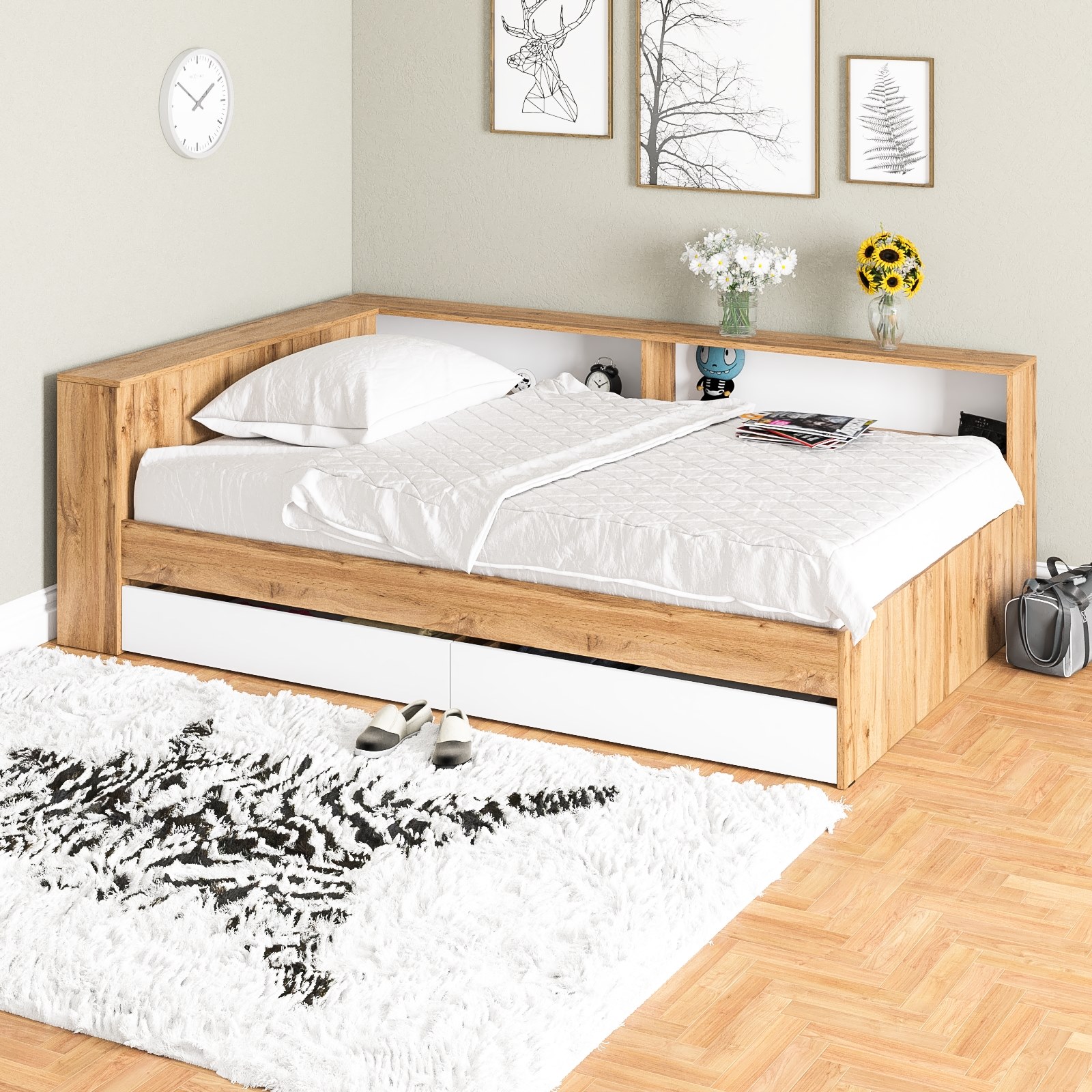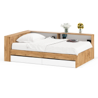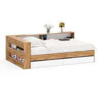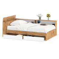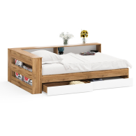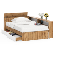 Отзывы о Столплит Ксения 1200 кровать с ящиками, ящиком для белья и прикроватным блоком для вещей Белый/Дуб вотан