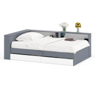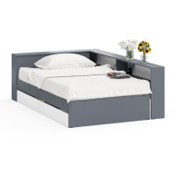 Дополнительно в изголовье предусмотрена откидная панель с нишей, которая отлично подойдет для хранения книг, гаджетов и прочих мелочей, создавая удобное пространство для вечернего отдыха. Кровать имеет универсальную сборку, что позволяет расположить выдвижные ящики как с левой, так и с правой стороны, в зависимости от планировки комнаты. Фасады ящиков выполнены без ручек – удобные выемки обеспечивают простоту использования и добавляют мебели современный минималистичный вид.