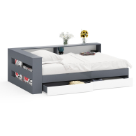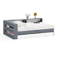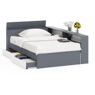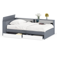 Отзывы о Столплит Ксения 1200 кровать с ящиками, ящиком для белья и прикроватным блоком для вещей Графит/Белый