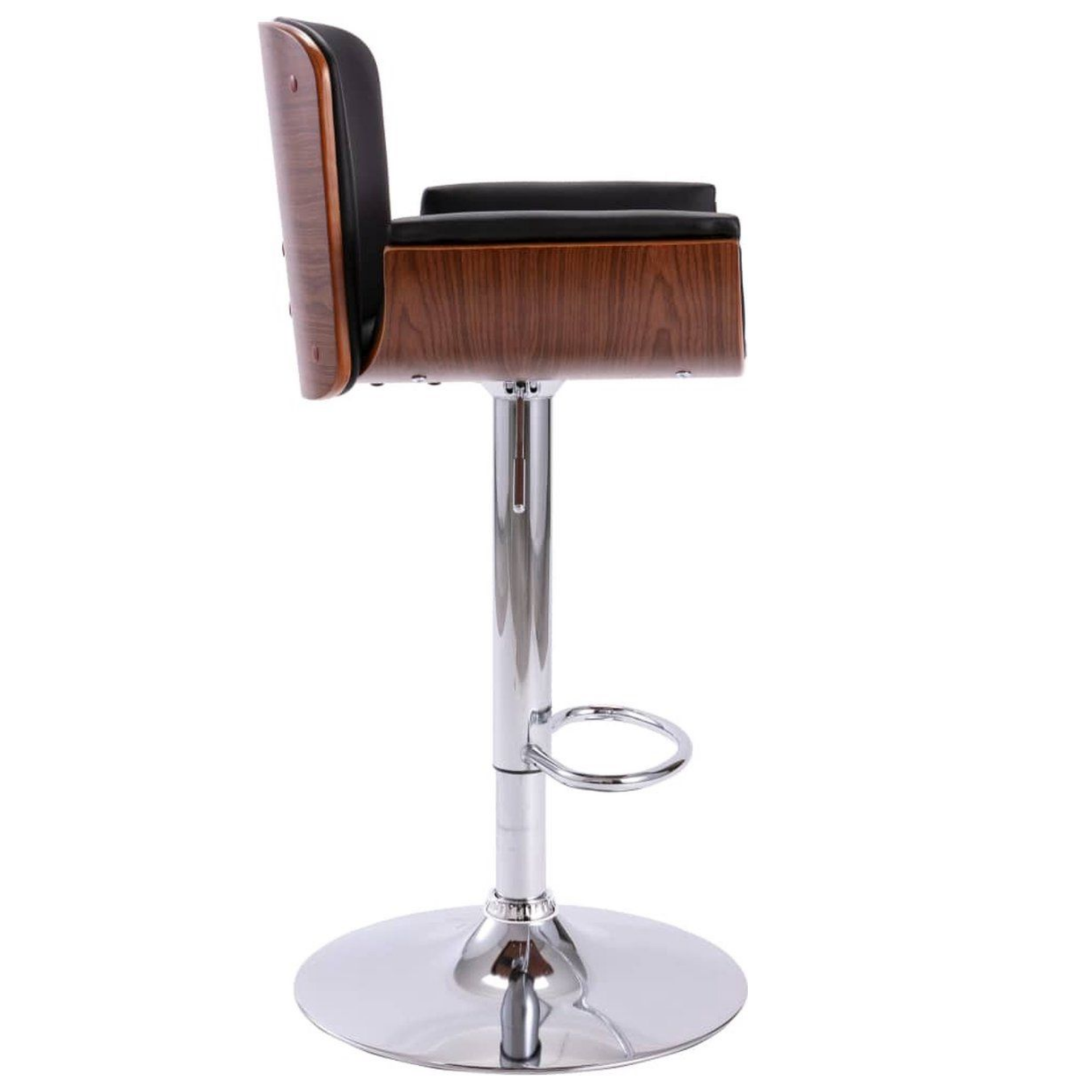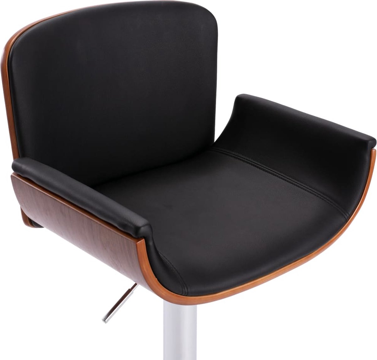 Металлическая ножка с хромированным покрытием придают стулу не только прочность, но и стильный внешний вид, создавая ощущение легкости и изящества. Лакированная выгнутая фанера сиденья обтянута качественной экокожей, которая доступна в элегантных черном цвете, обеспечивая комфортное прилегание и долгий срок службы.